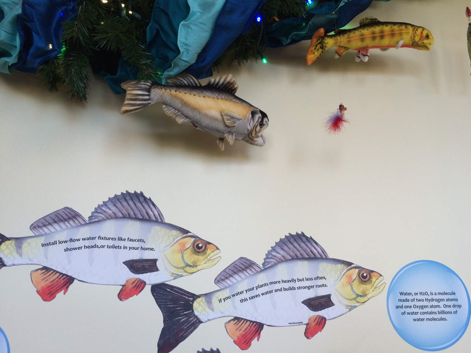 Did you know you could buy low-flow water fixtures? Water plants more heavily and less often! Oh, and check out that whimsical fish garland!