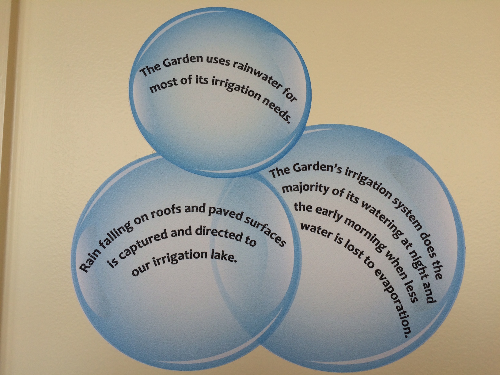 You know the theme of this year’s Dominion GardenFest of Lights is H2Whoa!, but did you know that the Garden uses rainwater for most of its irrigation needs? We love how this year’s water theme allows us to talk about important environmental issues, like how you can make a difference in water conservation at your own home. When you visit GardenFest this holiday season, make sure that you explore our water-education fish and bubbles in the Kelly Education Center hallway. There are many fun tips that you can explore and share with your kids. You’ll find them on the way into see the trains.