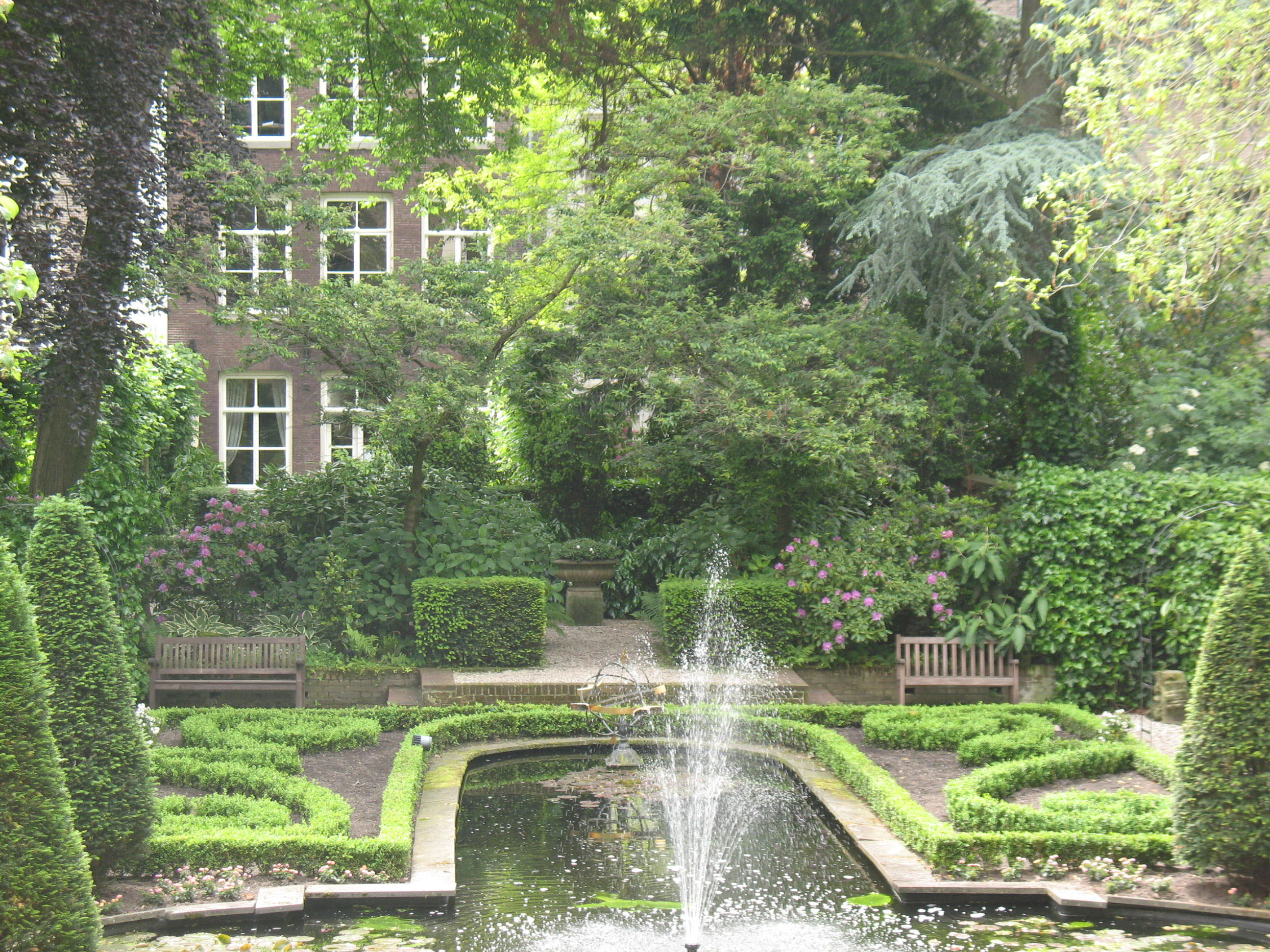 Sunday, we met up with garden designer, historian and tree expert, Andre Ancion. He led us through the city of Amsterdam and into a spectacular private house and garden, Geelvinck Hinlopen. I was surprised by the size of the garden compared to the view of the row homes from the canal. This particular house is a double canal house, noted by having 5 windows facing the canal instead of 3. The garden design really allowed for the maximum plant space and some asymmetrical design that was quite stunning.