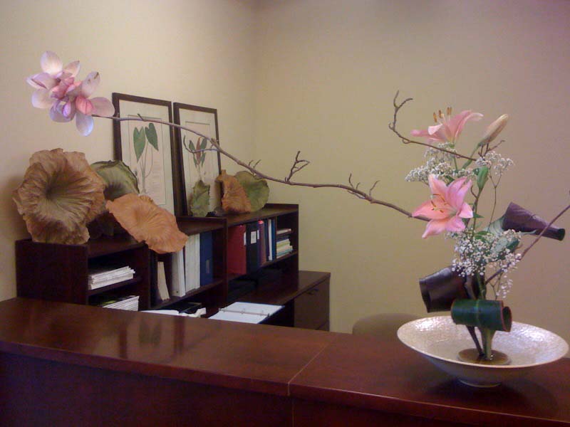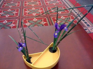 Laura Anne Brooks of Designs From Dunluce taught a seasonal Ikebana flower arranging workshop at the Garden this morning – “Winter into Spring.” Here is an example of an arrangement from the class. It can be viewed along with three others in the library for the next few days.