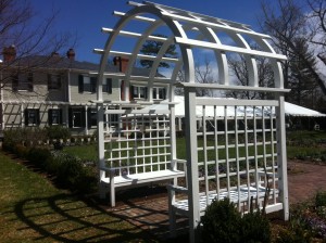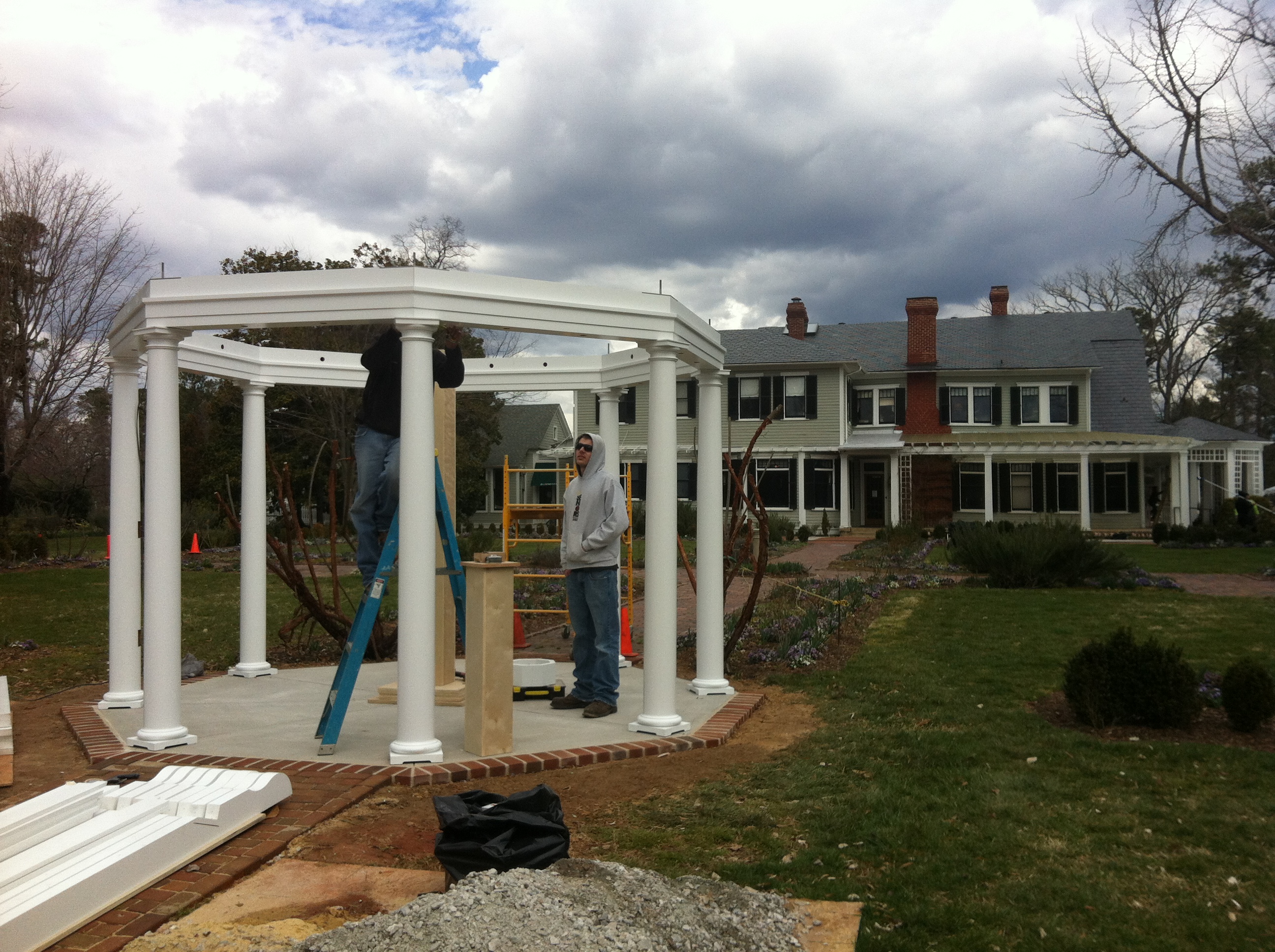 “It’s great that it can meet both functions important to the garden — for both daily visitors and special events like weddings. It’s really going to be such an asset for any event to have this special space. ” Speaking of events, a perfect time to really enjoy the new summer house will be Heritage Weekend — April 13-14. If you can’t make it Heritage Weekend, another great chance to view it will be during Historic Garden Week in Virginia. We’ll be open late on Wednesday, April 24 from 5 – 9 p.m. with music, wine tastings & tours of Historic Bloemendaal House. Seems fitting to enjoy these new structures then — the proceeds from Historic Garden Week help the Garden Club of Virginia fund this important projects like this one.
