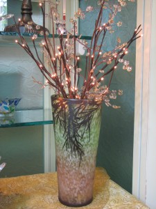A new supply of lighted willow branch stems has arrived at the Garden Shop. Choose either the long or short stem branches, put them in your favorite vase, add some beautiful flowers and plug in. Easy, quick, instant beauty. Get ready for the compliments and be sure to tell them — I got them at the Garden Shop at Lewis Ginter Botanical Garden!