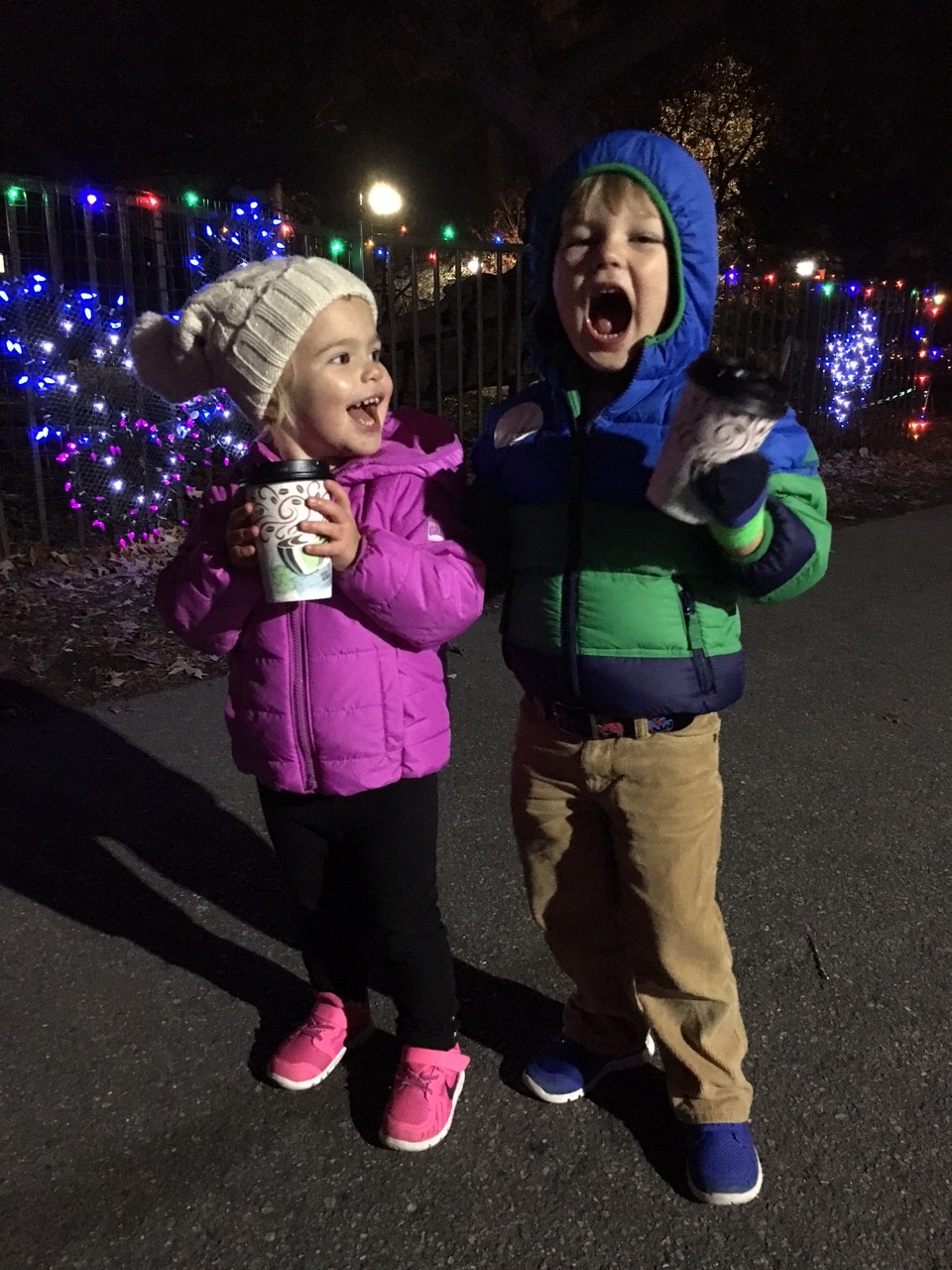 Last week, at Dominion Energy GardenFest of Lights, the little people in my life taught me a lesson: children experience the wonder of the world with all five of their senses. As the Lewis Ginter lights cast their spell over us, we watched glimmering wolves run wild along Sydnor Lake. We felt the warm glow of the bonfire and tasted crunchy, creamy s’mores with hot cocoa. We heard trains rumbling around the track, a silent thunderstorm and peals of laughter everywhere. And yes, we believe that bottle flowers really do smell sweet.