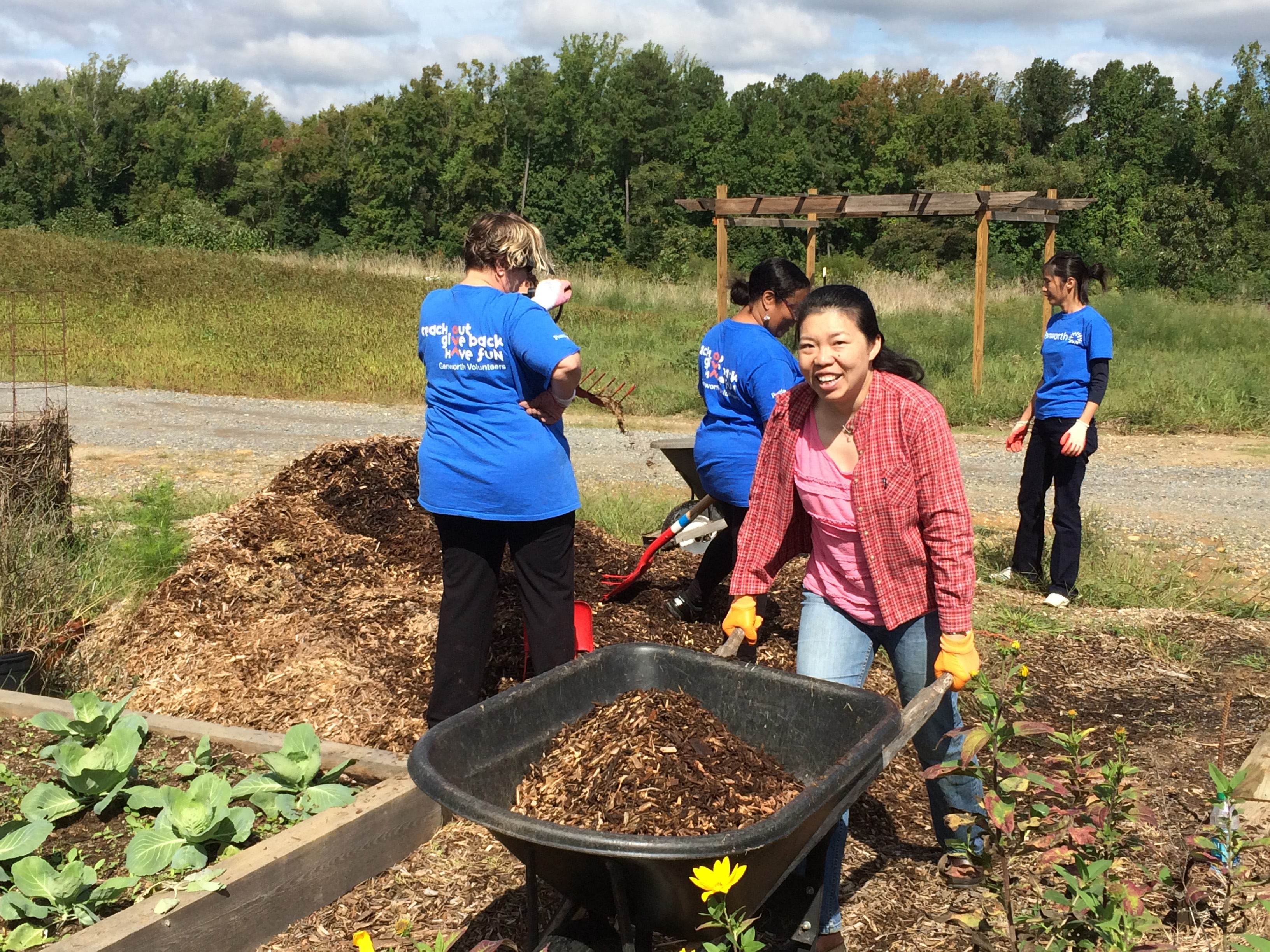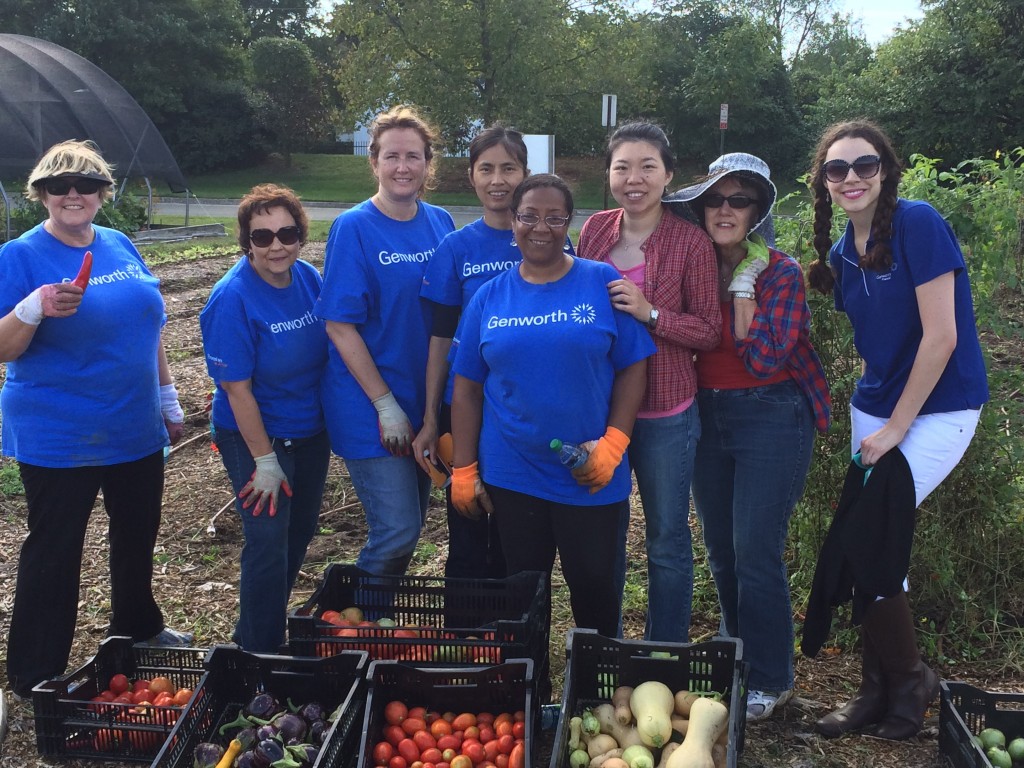 Huge thanks to Genworth employees who harvested 109 lbs. of tomatoes, peppers, eggplant, and butternut squash from the Community Kitchen Garden at Lewis Ginter last week. These fresh veggies will go to children and seniors in FeedMore’s Kid’s Cafe & Meals on Wheels programs. This team was so enthusiastic, they also cleared planting beds and mulched. I even think they had fun! Thank you.