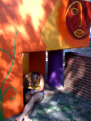 Come early to check out the mural, grab a bite, make a shaker at the Visual Arts Center craft table to march with and check out the Art on Wheels www.artonwheels-va.org mobile printing press – yes it really is on wheels! The Visual Arts Center will bring along a giant parade puppet to march with—please feel free to bring your own and if you do not know how to make one, join their class this week “Giant Parade Puppets” ages 8 – 12 Aug. 3 -7. www.visarts.org