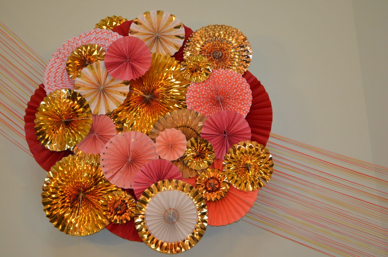 A 5-foot sun made of paper fans casts its imaginary glow over the Visitors Center atrium for Dominion GardenFest of Lights.
