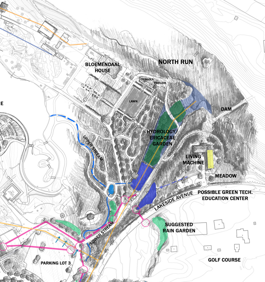 At Lewis Ginter, we’ve had a dream like this for a while — it’s called our Water Management Plan & Demonstration Garden. In 2007 we received a grant from Henrico County and completed a hydrologic masterplan with Nelson Byrd Woltz Landscape Architects. The plan focuses on smart water use, conservation, filtering and rain gardens with the goal of helping to protect the watershed of the James River and the Cheasapeake Bay. Currently we are working on funding to make this exciting plan a reality.