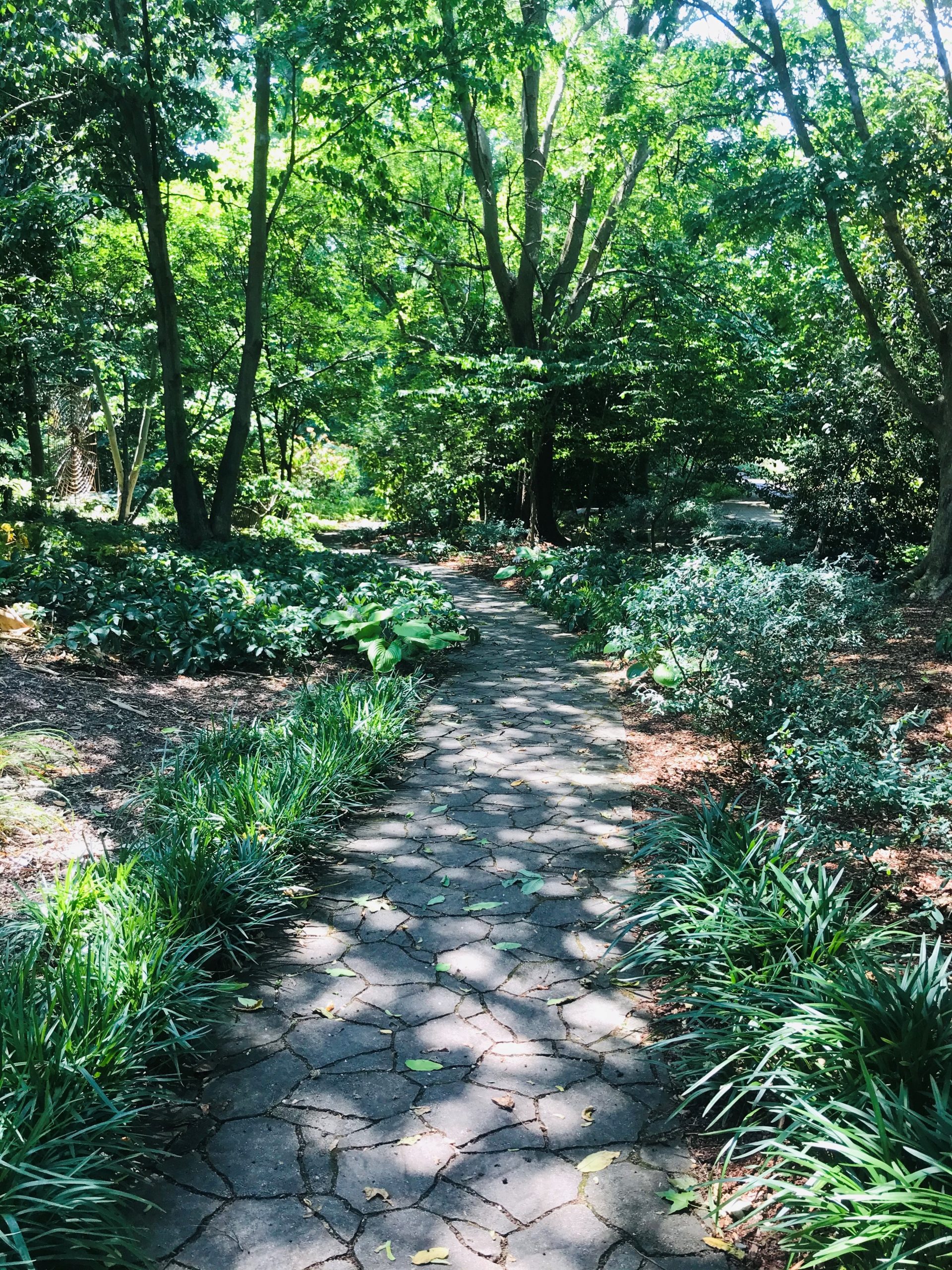 Next, she goes through and removes debris from the pathways and does a safety check of the area, removing debris from pathways, like large tree branches that could be obstructing the walkways. She uses a leaf blower to remove small debris. Those branches will be chipped later and used for mulch. She explained that sometimes, after a major storm, so much debris has fallen that you can barely see the path. But you would never know this because Michelle and the other horticulturists clean it up before we open our gates to visitors.