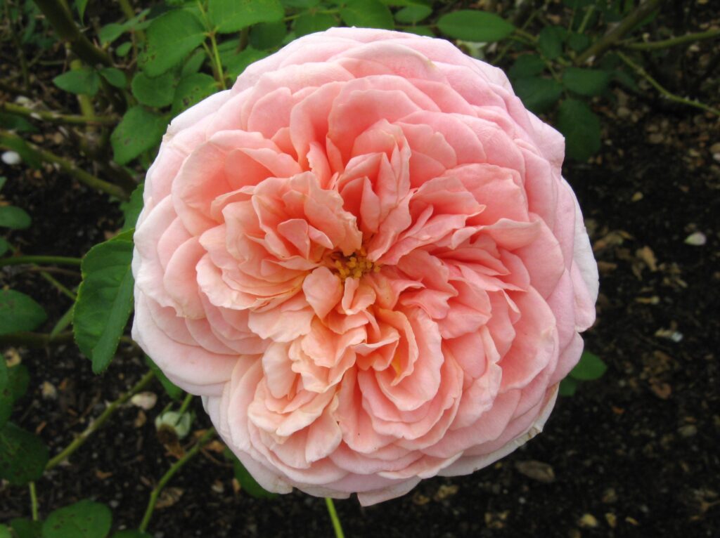 Like all David Austin roses, Rosa ‘Aussaucer’ Evelyn® was bred for its fragrance – it has a sumptuous scent reminiscent of fresh peaches and apricots. Its blooms are particularly large with as many as 100 apricot-colored petals artfully arranged around a darker center.