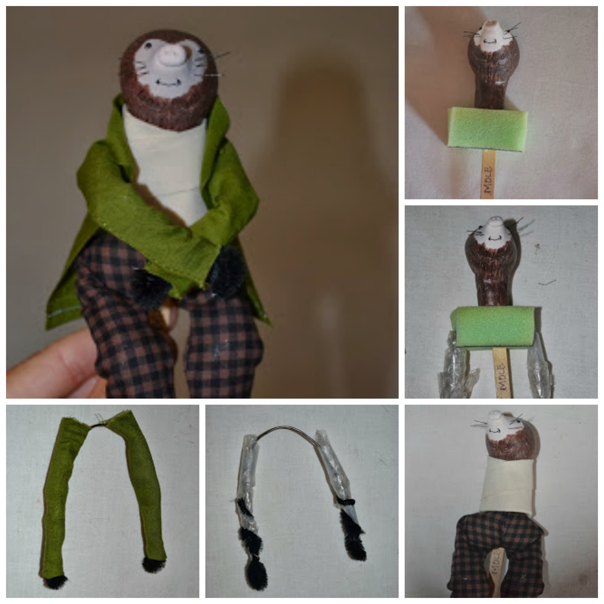 This year, the houses will replicate the animals’ homes in the book, The Wind in the Willows. To highlight the theme, we also decided to replicate the actual animals. Debbie, one of our great volunteers, made the animal’s heads out of clay. which she painted. Then, I created bodies out of foam, wire, bubble rap, and pipe cleaners and made clothing.