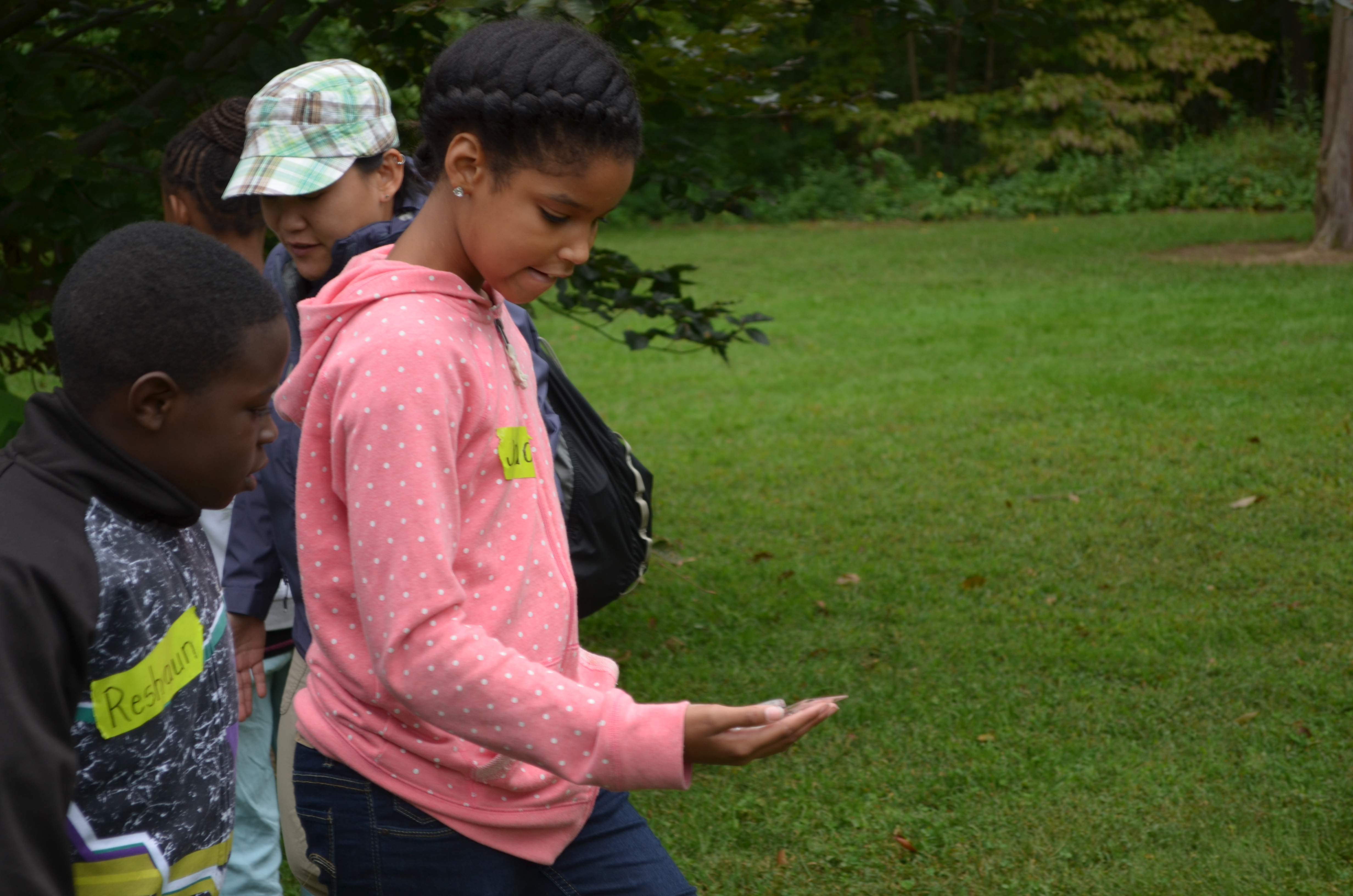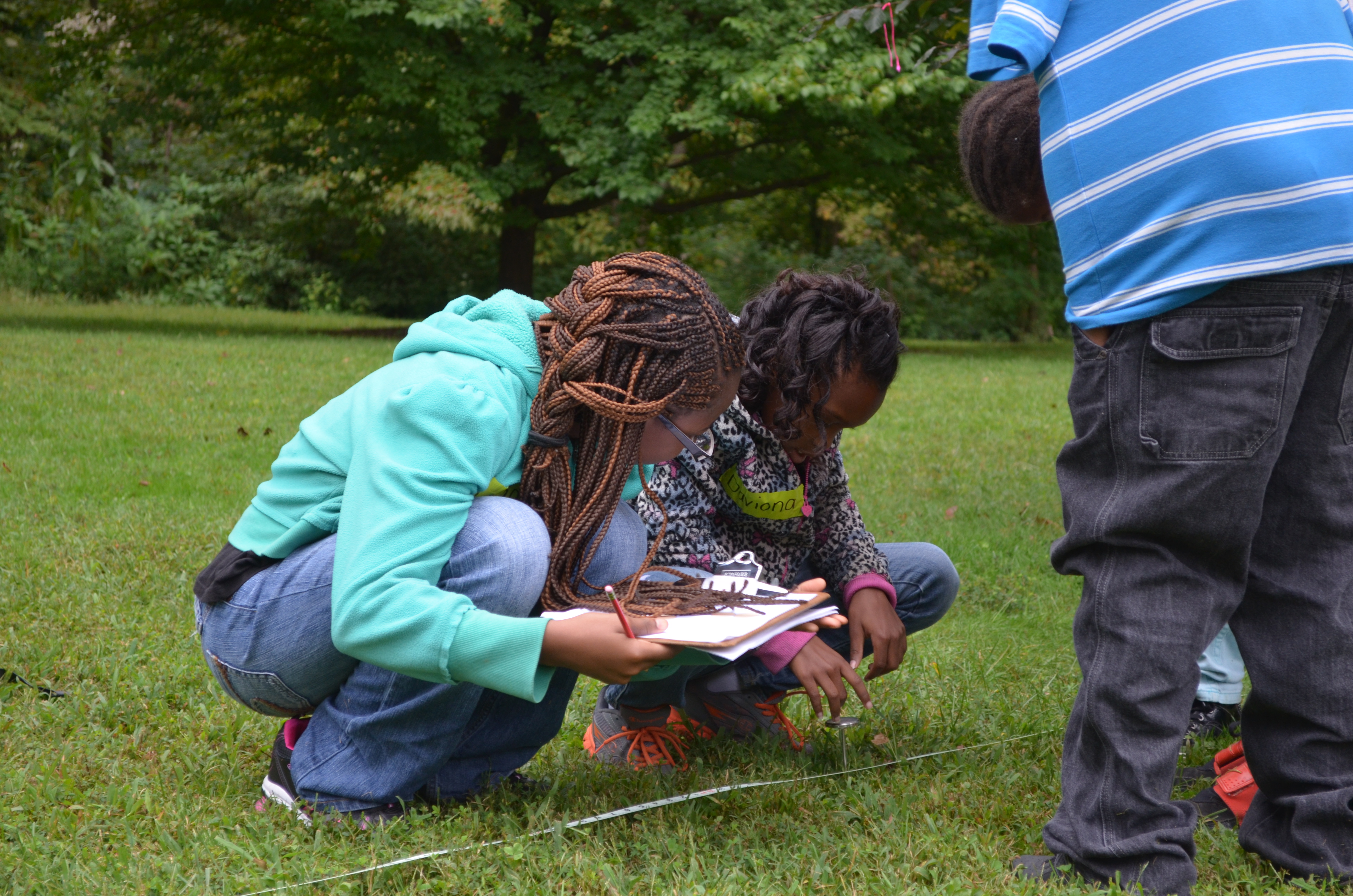 Determining the temperature of the soil at various points distance from the tree trunk. The children found that the temperature closer to the trunk was slightly lower than outside of the tree canopy. Because it was an overcast day, the temperature difference was small.