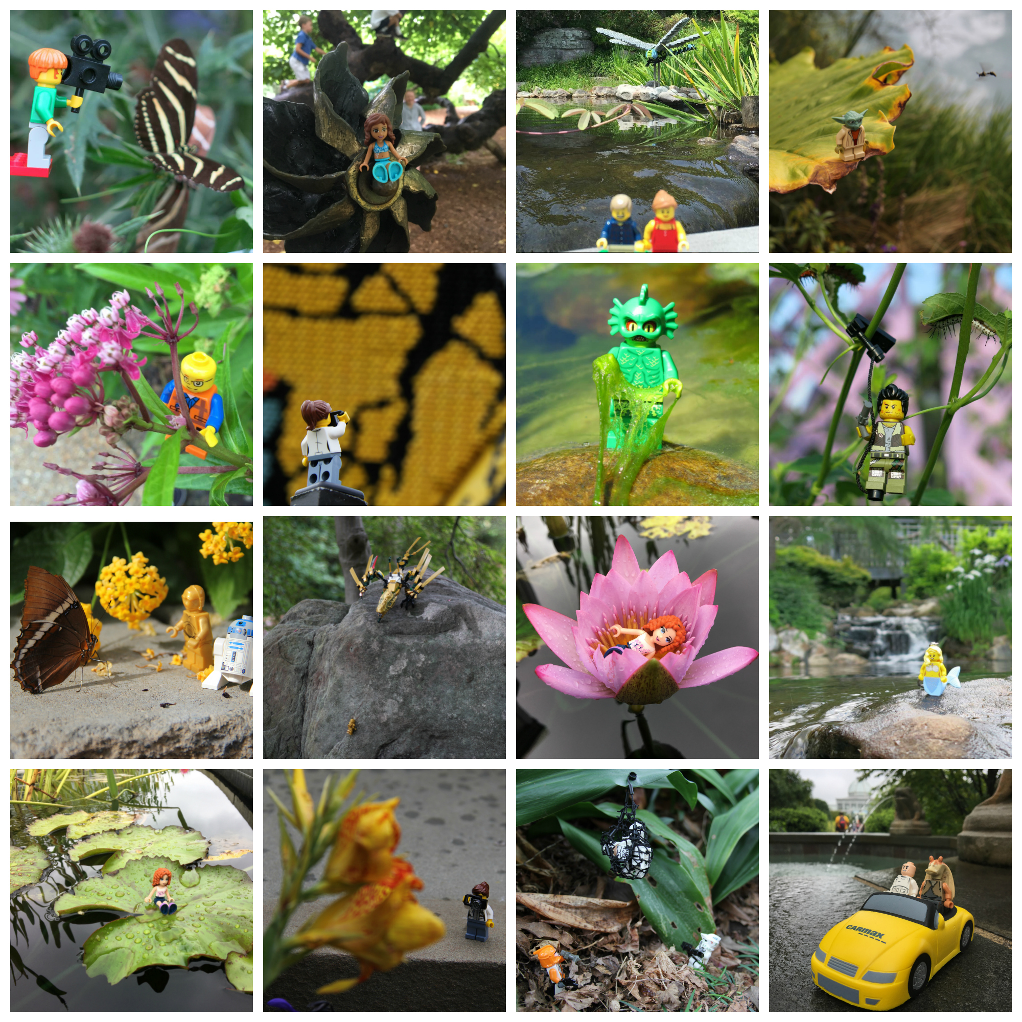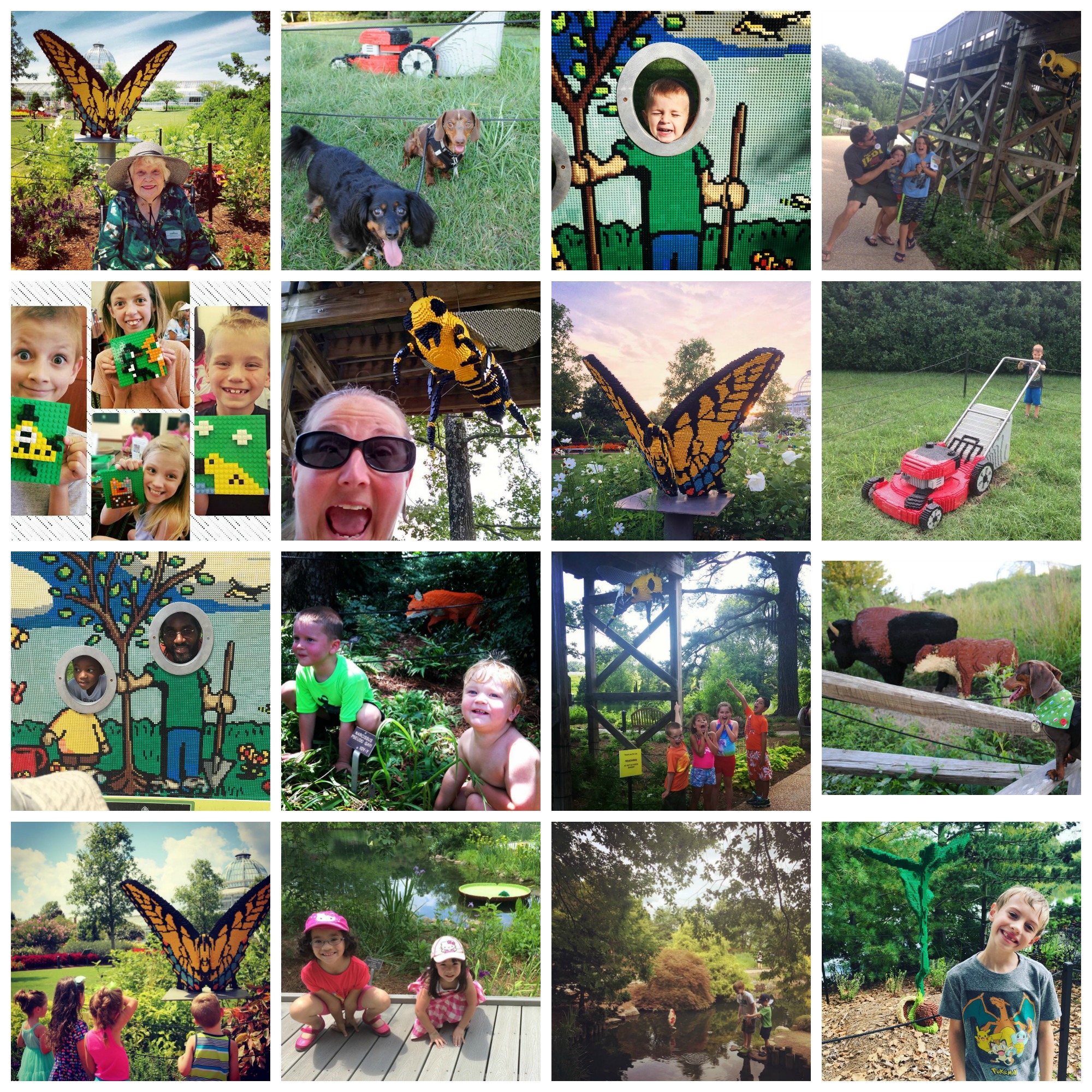 Semifinalists in the #LEGOutside Instagram contest (left to right, top to bottom): @am_green_gobbler_ma, Lily Hartley (age 11), @Kyallwine, Noah Renfroe (age 12), Karen Butterfield, Brady Renfroe (age 5), @am_green_gobbler_ma, @am_green_gobbler_ma, Noah Renfroe (age 12), Sawyer Renfroe (age 9), Lily Hartley (age 11), @am_green_gobbler_ma, Lily Hartley (age 11), Bradley Renfroe (age 5), Noah Renfroe (age 12), Noah Hartley (age 7). These photos creatively envisioned the Garden experience from the perspective of LEGO Minifigurines.