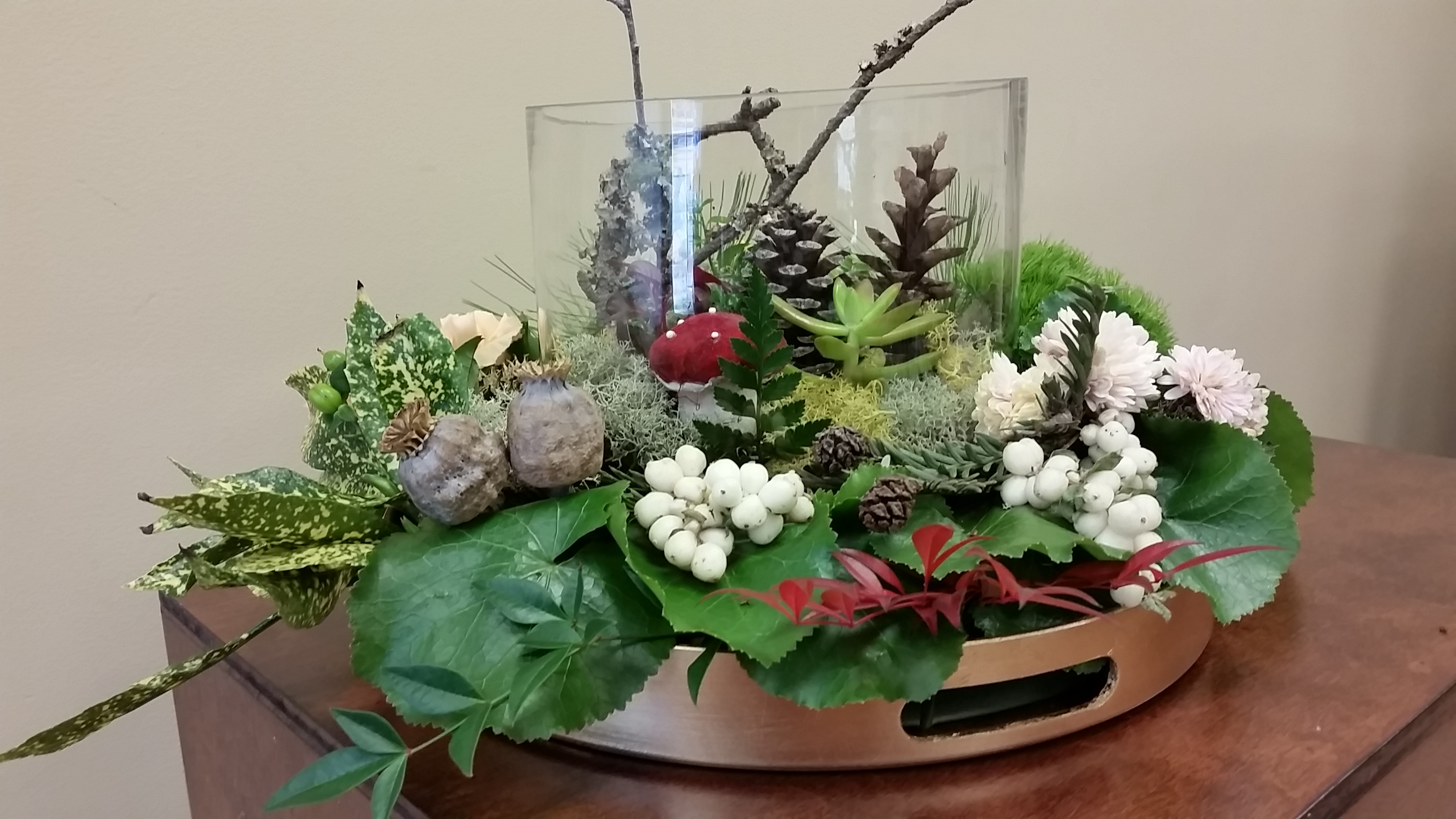 A blending of living plants with berries, seedpods and flowers provides an extraordinary hostess gift.