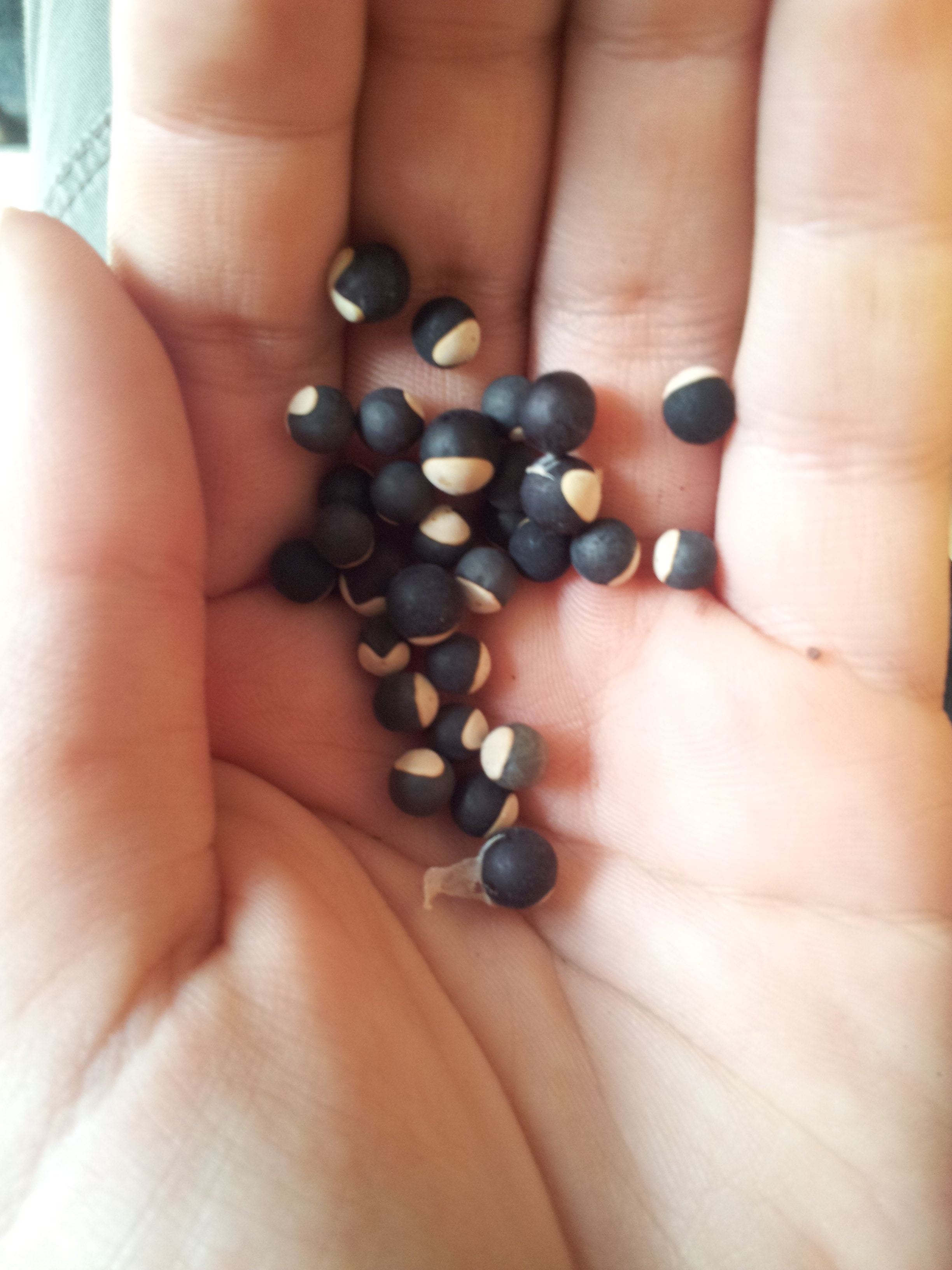 As you can see in the picture, matures seeds have a perfect white heart atop a black spherical seed.