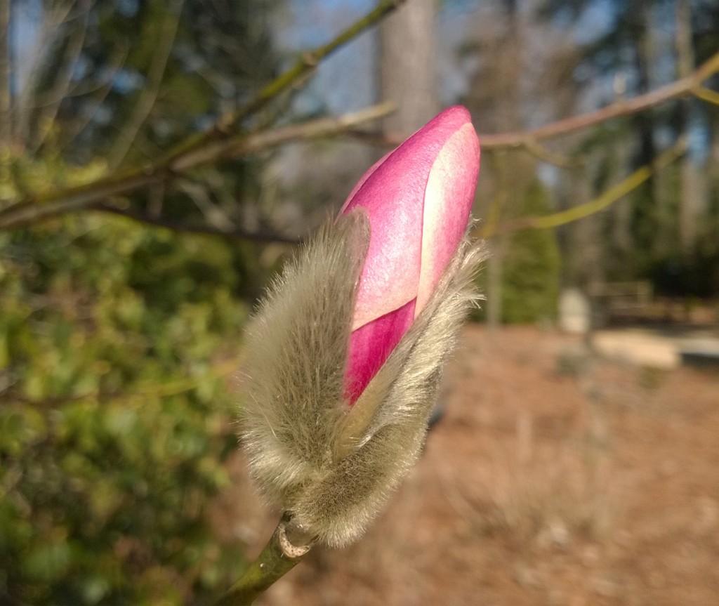 My love affair with Magnolia amoena started many years ago. I first tried to write about her in 2016 when Senior Horticulturist Elizabeth Fogel sent me this image above. She was just about to bloom. Each year, I set a reminder in my calendar to check for blooms and to try to research more about this beauty, but I just haven’t had much luck unraveling the mystery.
