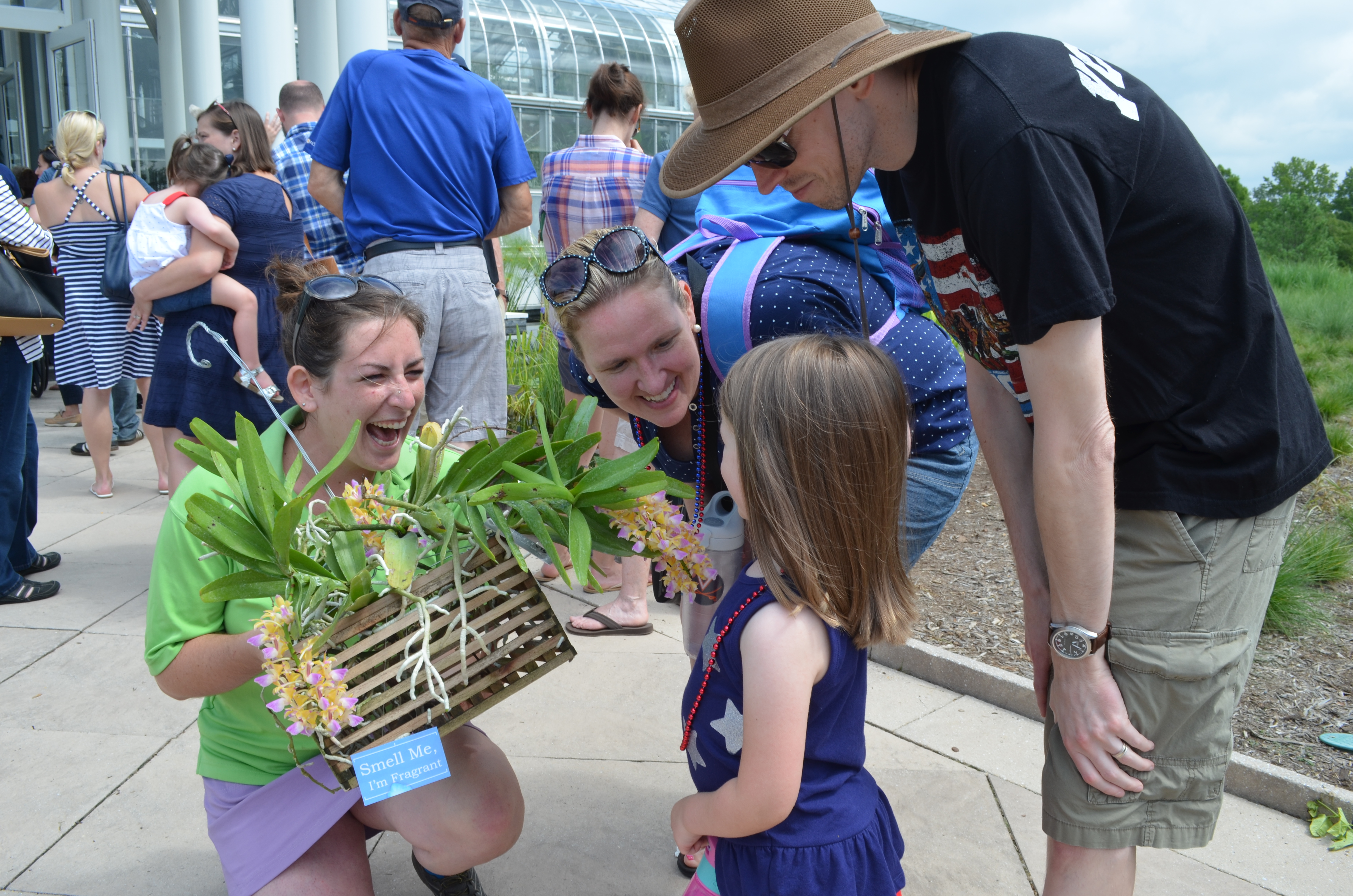 My point is the Chelsea has a contagious enthusiasm. It’s obvious she loves her job. If you were one of our many visitors who came to see Butterflies LIVE! on our free admission day during CarMax Free Fourth of July, you probably met her. She was the one with the lemony scented arid orchid, Aerides houlletiana. She took it to all of our guests who were waiting in line so they could see (and smell) something new. Then she showed them how it didn’t even have any soil! See what I mean? Okay Chelsea, take it away!