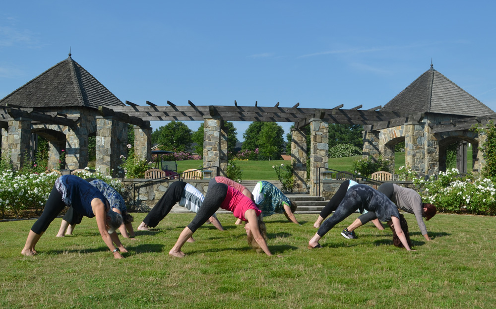 The Garden has its own spirit and if you listen, you’ll hear it calling you to your yoga mat. Back pressed into the sun-warmed concrete or the soft grass, you can find your center, confident that you are on solid ground. You can be free to rock your hips from side to side feeling as the tension disappears, making more room in your body and mind for the birdsong, sunshine and smell of blooming flowers to fill you.