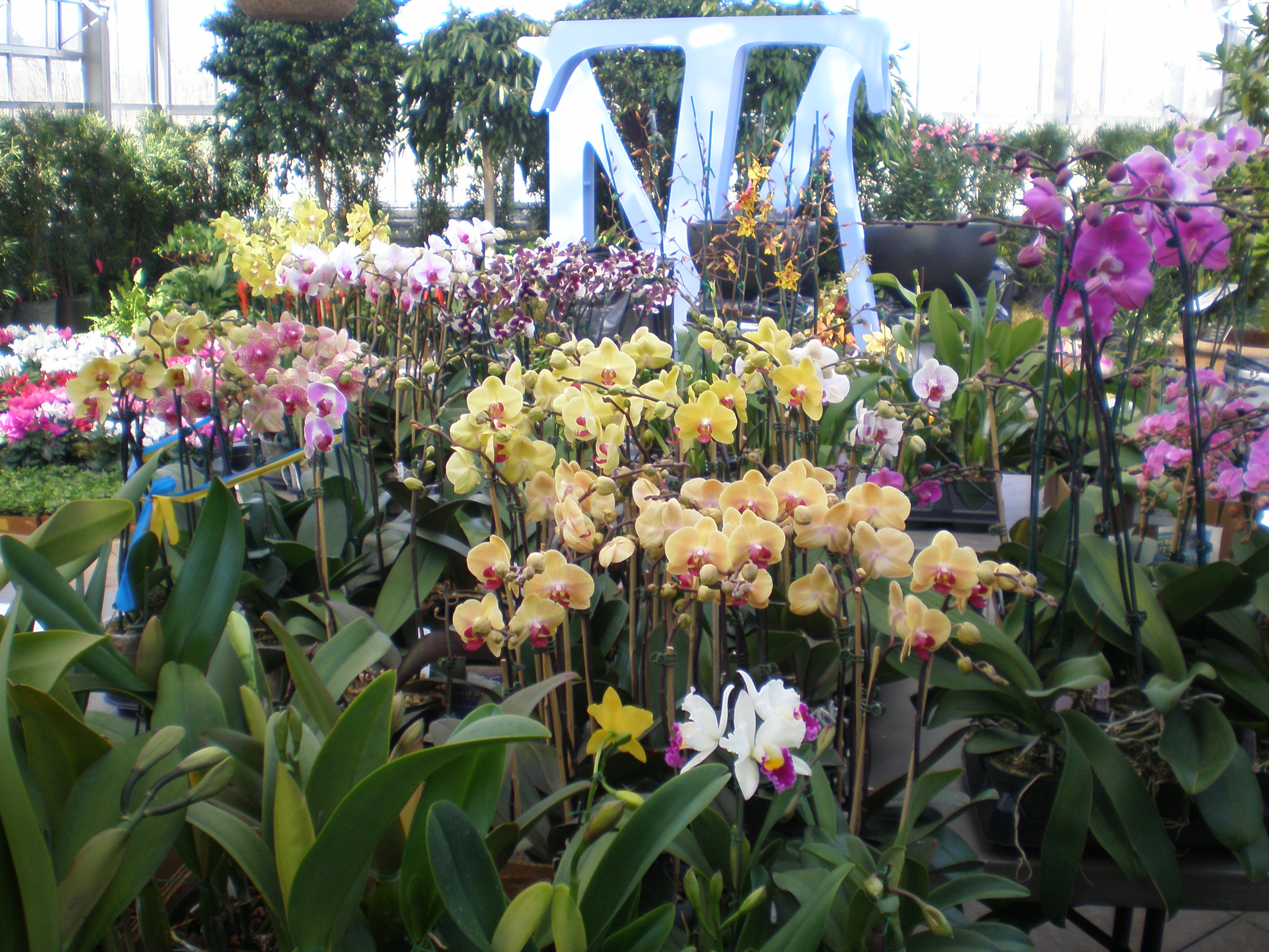 Yesterday, I walked through the Conservatory….I was so happy to see orchids of all shapes, colors and sizes EVERYWHERE! Orchids Galore! opens this Saturday and we’ve been receiving shipments of plants all week. This is such an exciting time for the Garden and the first time we’ve ever had an orchid-specific display. We’ll have over 2,000 orchids — 500 of them museum quality. Another reason we are so excited is because the U.S. Botanic Garden has loaned us some wonderful sign-age including the “The ABCs of Orchids,” on loan from the U.S Botanical Garden.