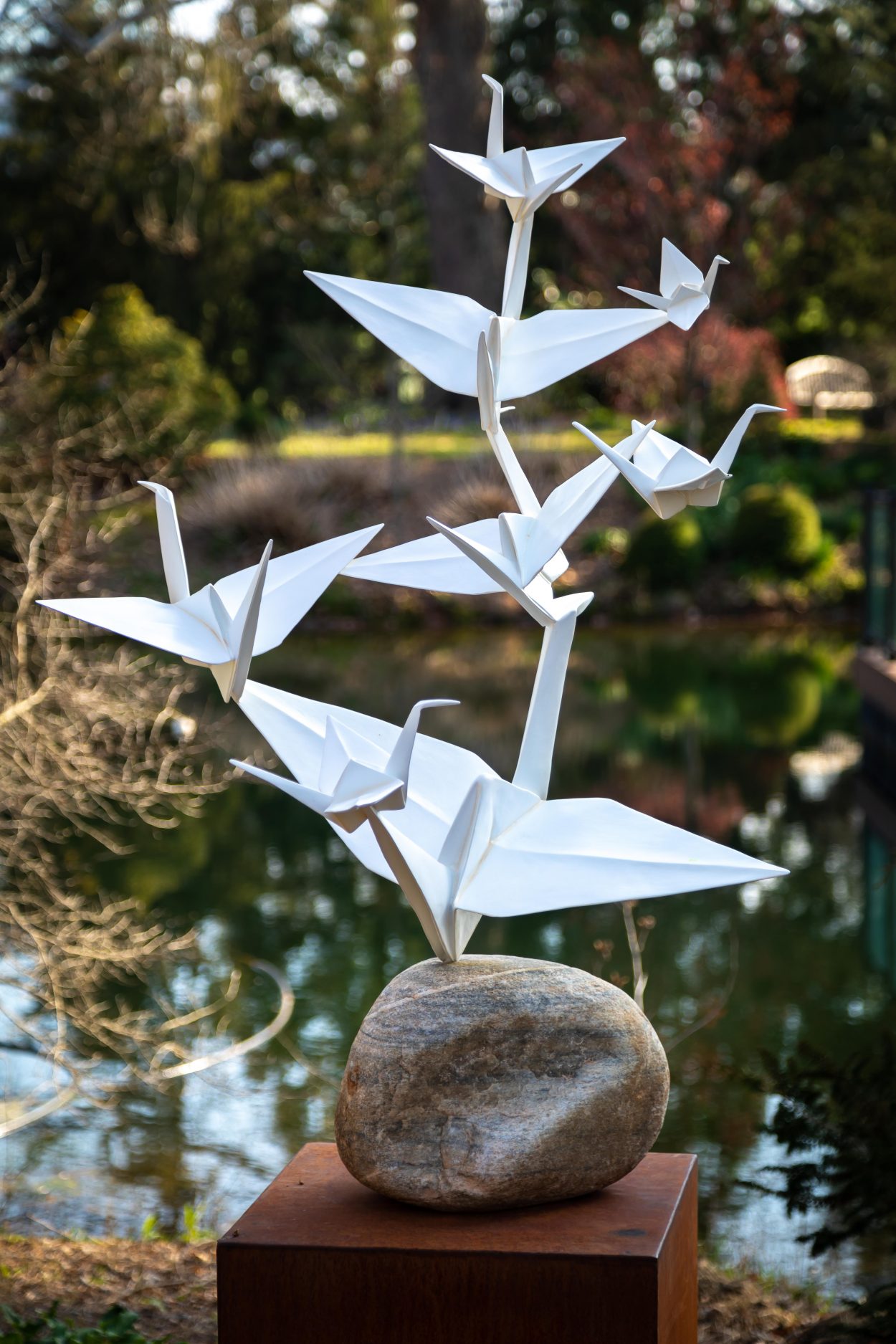The second stop on a national tour, Origami in the Garden captures the delicate nature of a paper art form (origami) in museum quality metals.
