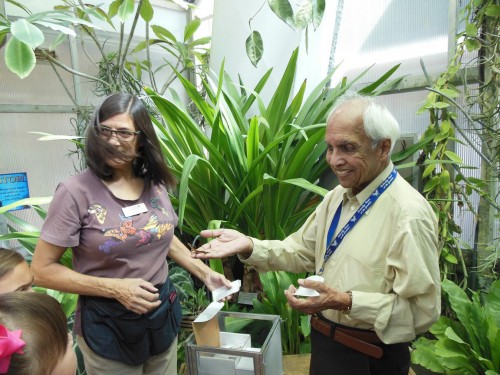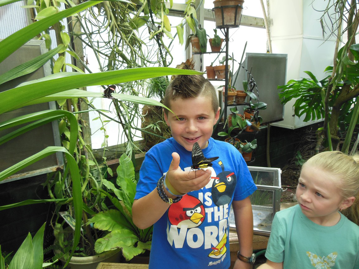 Last week we told you about our butterfly round-up. At the close of Butterflies LIVE we sent 194 butterflies from the exhibit to Tucson Botanical Gardens. Tucson just sent this note with these pictures, “There were three families in the exhibit when the package arrived so those children (and moms) were able to participate by holding some of the butterflies until the butterflies flew off. Usually we have a no touch policy but in this case we made an exception — and it was a hit with the families….Thank you very much for all the butterflies.”