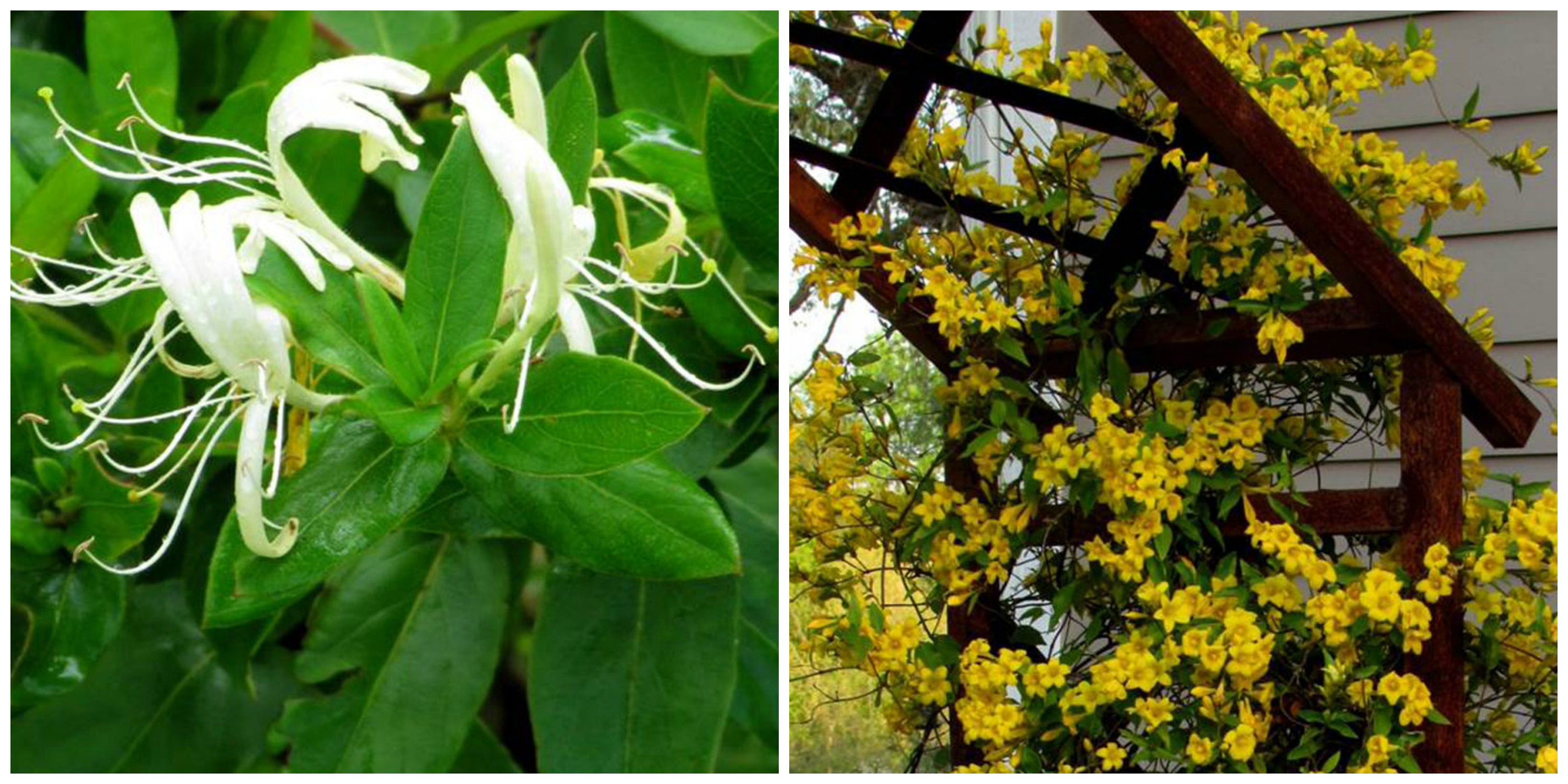 Consider swapping the beautiful but pernicious Japanese honeysuckle vine, Lonicera japonica, which can overtake a fence row in no time, with the better behaved and equally beautiful Carolina jessamine, Gelsemium sempervirens, showy, hardy and almost as fragrant.