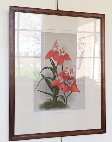 What is clear in both the Conservatory and the illustrations is the uniqueness of each orchid species and how varied their characteristics are. With the exhibit of nine illustrations, I chose the works that surprised me the most in their structure, color, and beauty. Each illustration can stand alone and amaze, but the real strength of the series is the astonishing variation in the species when they are viewed together.