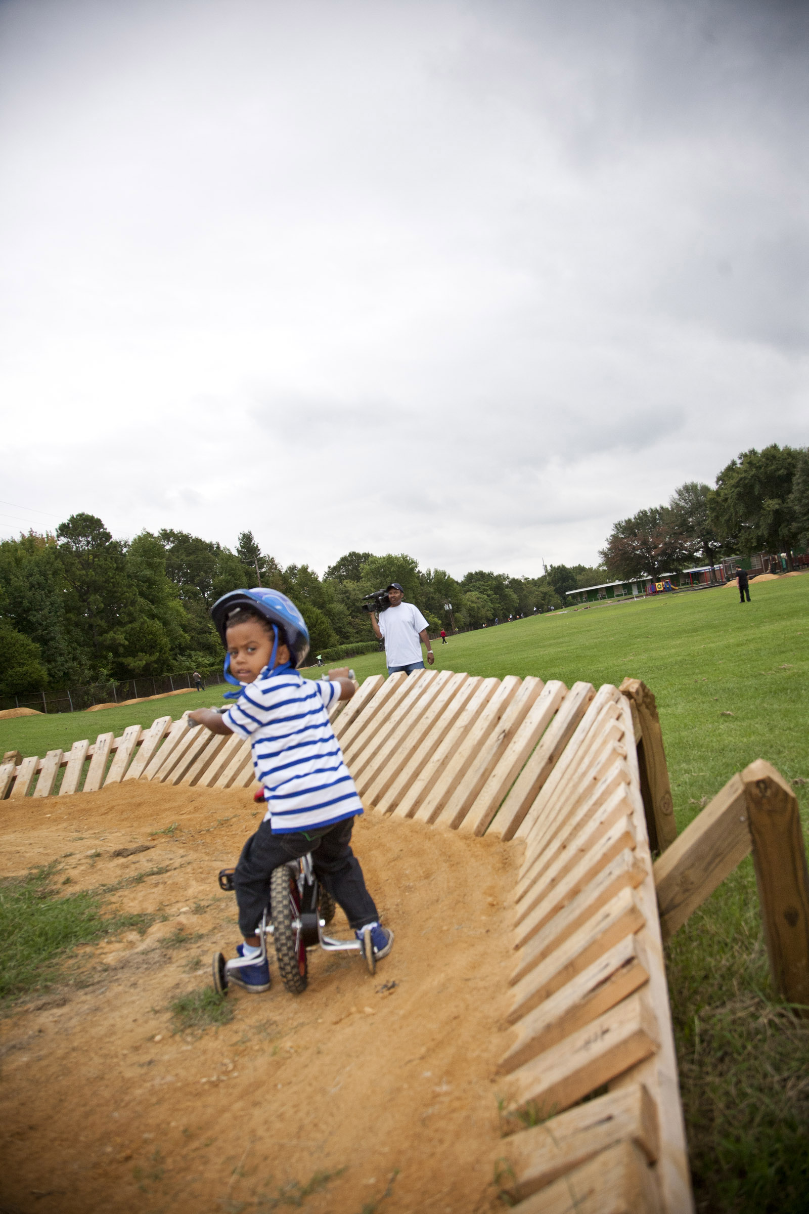 Last summer this year RCC converted the 10-acre abandoned field next to Armstrong High School, in Fairfield Court public housing, into the Armstrong High School Bike Park, a 1.5 mile trail with 22 skills features. Now they are bringing beauty and shade to the nation’s first and only inner-city mountain bike park, a point of entry into mountain biking for inner-city area youth and Richmond Public School students