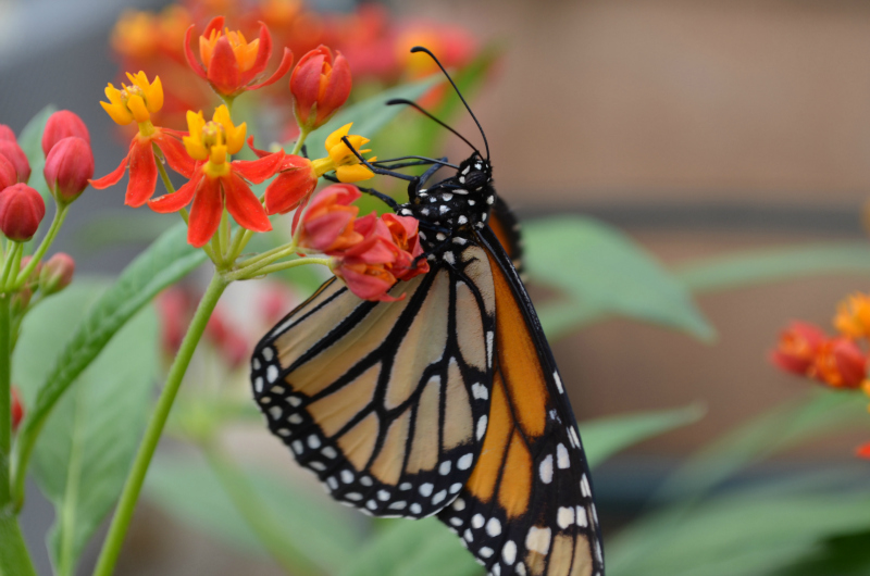 Here at Lewis Ginter Botanical Garden, we want to be part of the monarch butterfly solution! Asclepias incarnata (Swamp Milkweed) and Asclepias tuberosa (butterfly weed) are intentionally planted around the edge of Sydnor Lake in a “designed plant community.” These plants’ leaves are almost the only place monarchs will lay their eggs, and luckily they’re the perfect spot for caterpillars! The larvae eat the leaves and absorb toxins to ward off predators. Butterflies can find also find refreshment from the plants’ nectar.