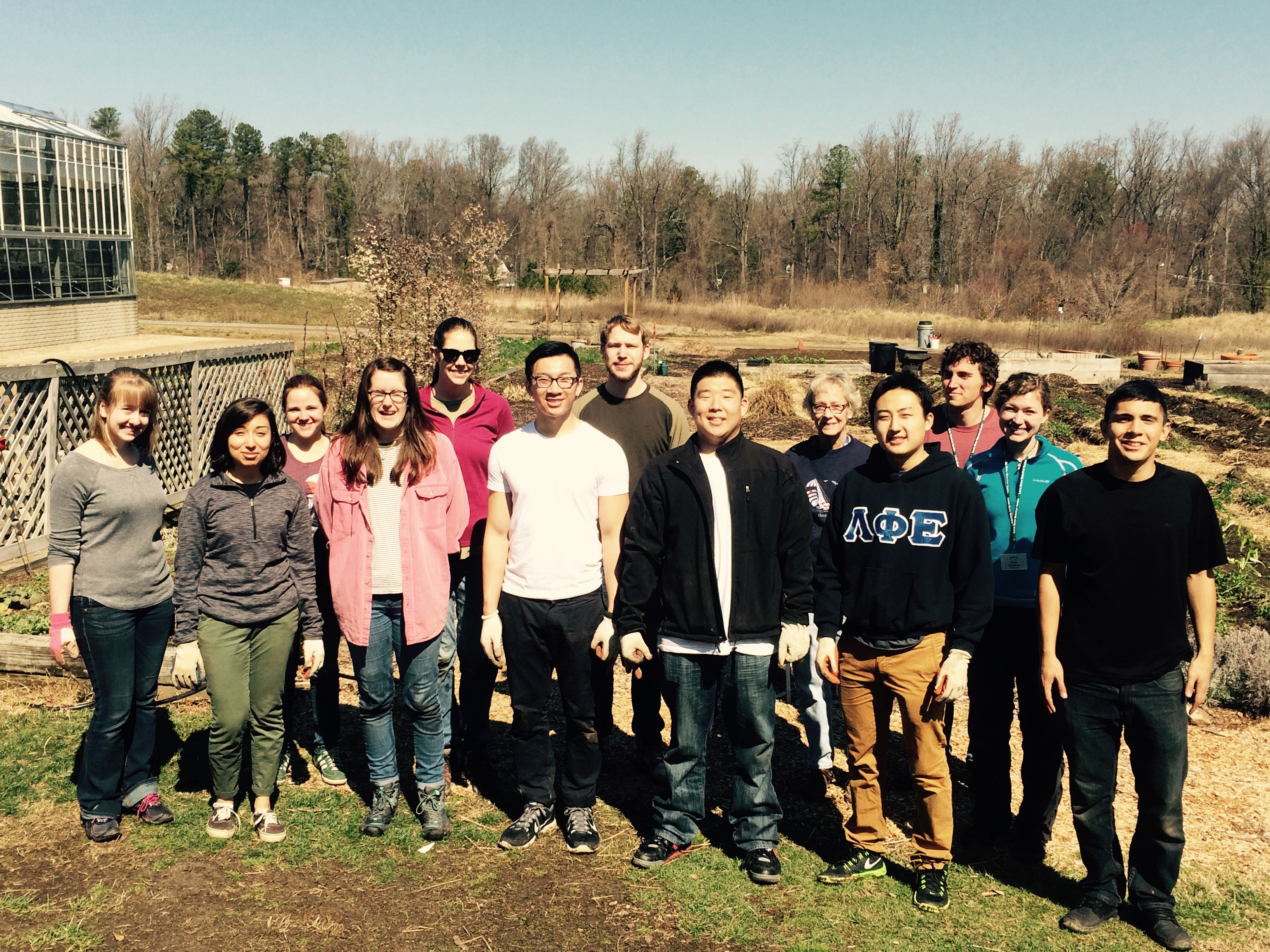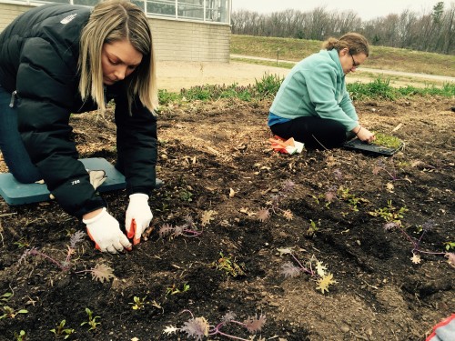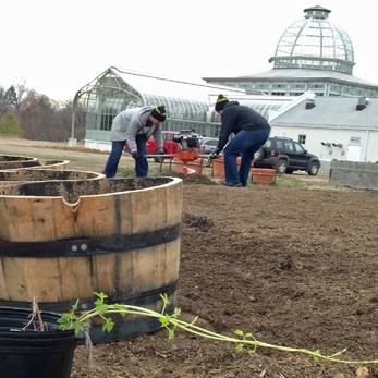 Spring is here, and it has been a very busy week in the Community Kitchen Garden. This past Saturday, a group of student volunteers from Virginia Commonwealth University and several Lewis Ginter volunteers worked cutting back ornamental grasses around the Conservatory, planting early spring vegetables, and preparing a site for growing hops!