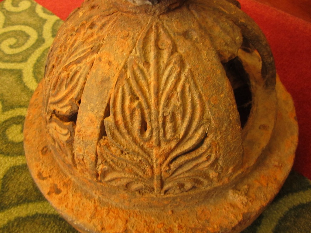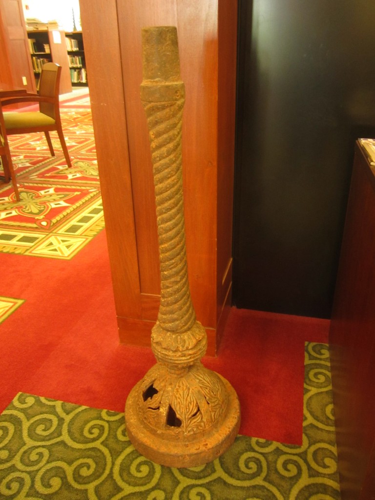 We did learn a bit from Bill’s readers about the history of Lakeside Park, a scene of gaiety and fun that opened in 1896, and is now known as the Jefferson Lakeside Country Club. I will write more about Lakeside Park in future installments. Staff at the country club offered us this iron stanchion or lamp-post shown here. We are excited to add this to our collection of Lewis Ginter memorabilia.