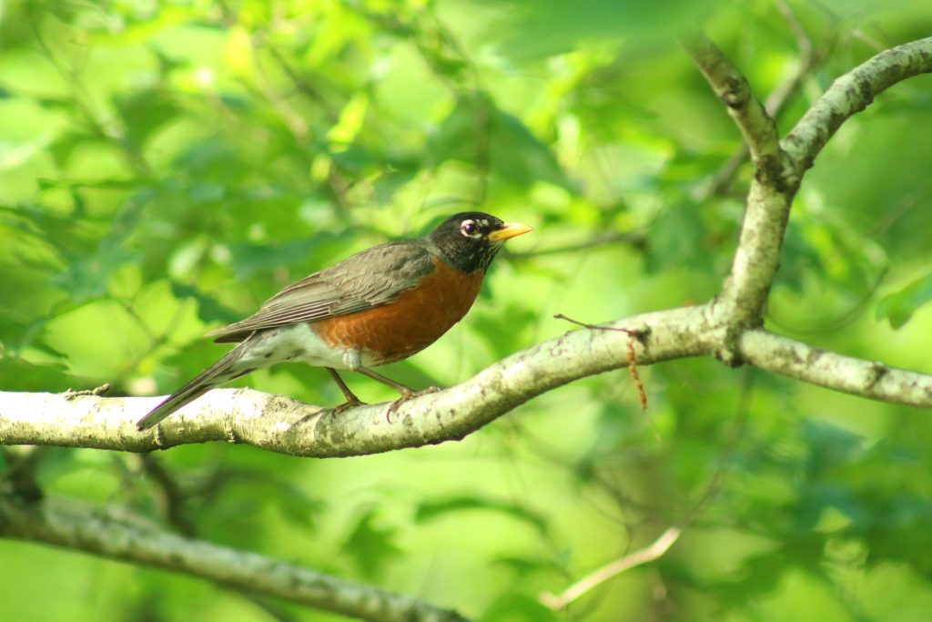The North American robin is probably the least skittish bird at the Garden, in my opinion. I see them everywhere, hopping around, chasing each other, and flying from one branch to another.