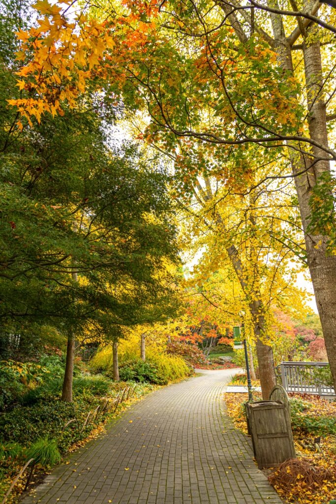 There are Japanese maples in front of the Robins Tea House and throughout Asian Valley that have amazing fall colors and strolling the paths here and along Sydnor Lake offer the chance to see the foliage reflected in the water.