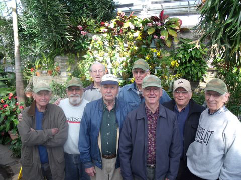 The Lewis Ginter Botanical Garden “Geezers:” First row – left to right Dick Abbott, Rex Dazey, Bob White, middle row Fred Bode, Bob Van Divender, and Bob Will, back row Dick Elcock, Stanley Reed