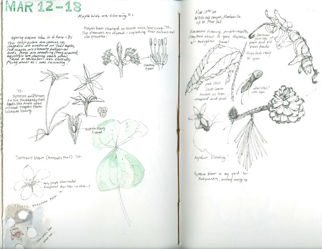 text and drawings from a nature journal