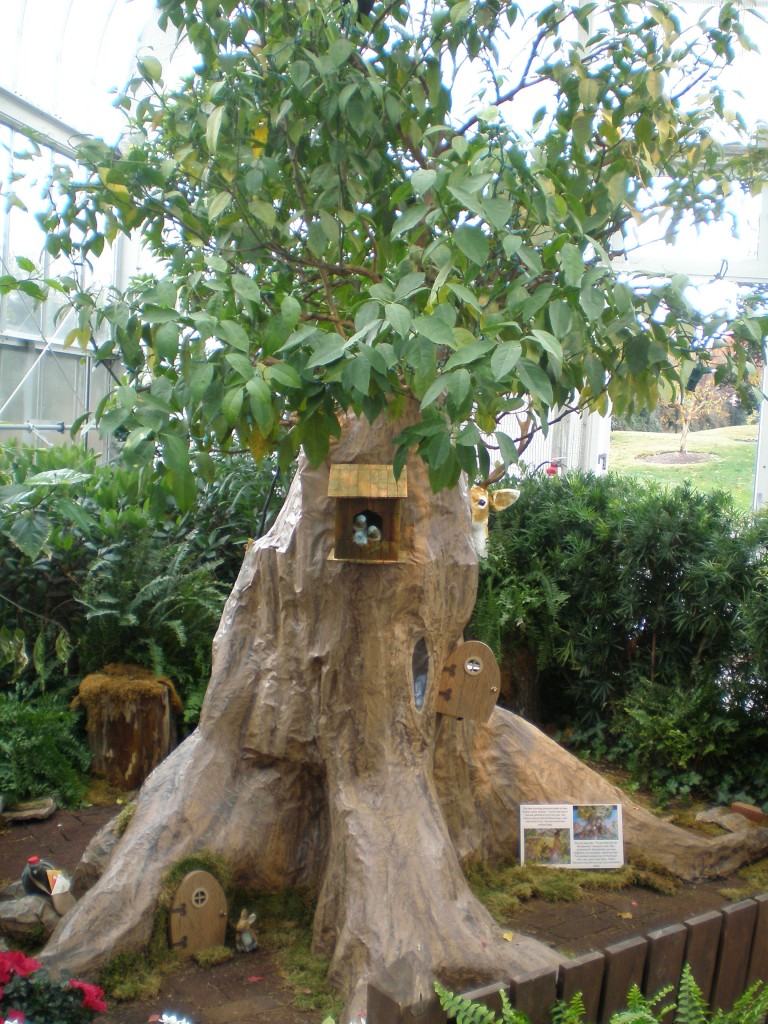 Last week we told you all about our new addition in the Conservatory — “The Old Tree”. We are happy to announce that volunteers Nancy Butler and Alexandra Slusher have created a masterpiece. The Old Tree is ready for holiday visitors! The inhabitants have moved in and are ready to greet their fans of all ages. We can’t wait to see you at GardenFest!
