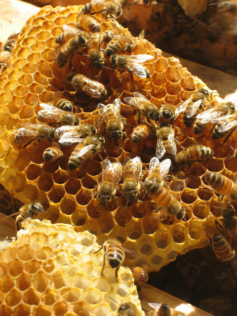 I always call my bees “my girls.” If you know much about bee hives, you will know that the workers(girls) do all of the work (collecting nectar and pollen, cleaning the hive, raising the brood), the queen lays the eggs (I call the queen “mom”), and the drones (boys) are basically around to eat honey and mate with new queens. So, the girls are the ones that I connect with because I respect their hard work and dedication to their families — and I think they are super cute 🙂