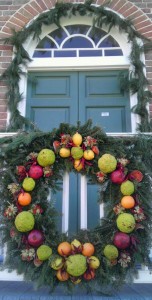 Susan Dippre, the person who oversees the holiday decorations at Colonial Wiliamsburg, started the tour with a history of holiday decorating at Colonial Williamsburg. Colonial Williamsburg, Lewis Ginter Botanical Garden and Maymont share many of the same experiences and challenges when it comes to holiday decorating. “What was once a one or two week display now has to last six to seven weeks,” Dippre explained. “While we used fresh greens in the beginning, we now use more dried materials because they have to last longer.”