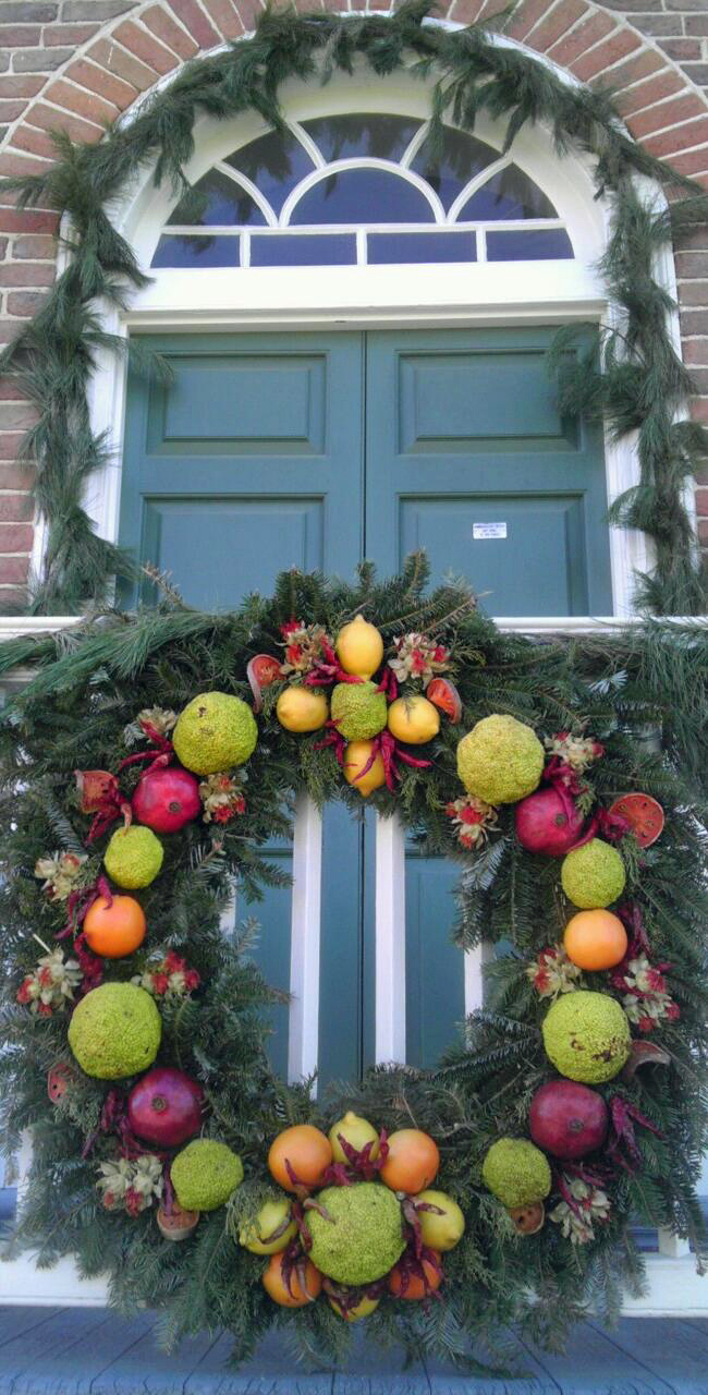 After the tour, the group headed to King’s Arms Tavern for lunch and decorations in front of the Wigmaker’s Shop caught my eye. “What are these?” I asked a nearby costumed interpreter, pointing to white cylinders placed in the wreath. “Wig curlers,” she said, and went on to explain they were made of clay and that the wreath also included horsehair, which was used in wigs at the time. It was the kind of “teachable moment” Colonial Williamsburg does so well and inspires us all.