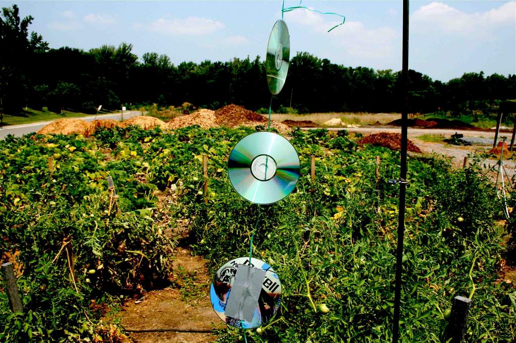 Always a provocative title, but here’s the thing. You’ve seen the pie tins hung in gardens to keep birds away, right? Well, this is the modern version. It’s too long a story to describe where I first saw this idea, but it’s been working so far.
