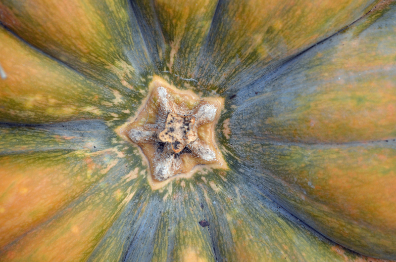 In addition to gourds, we found interesting colors, textures and forms all around. We thought the wrinkly Osage Orange (Maclura pomifera) resembled a green brain, agreed the spiky Gomphocarpus physocarpus looked alien, and were delighted to find a small star shape in the stem of the Cucurbita moschata ‘Musquee de Provence.’