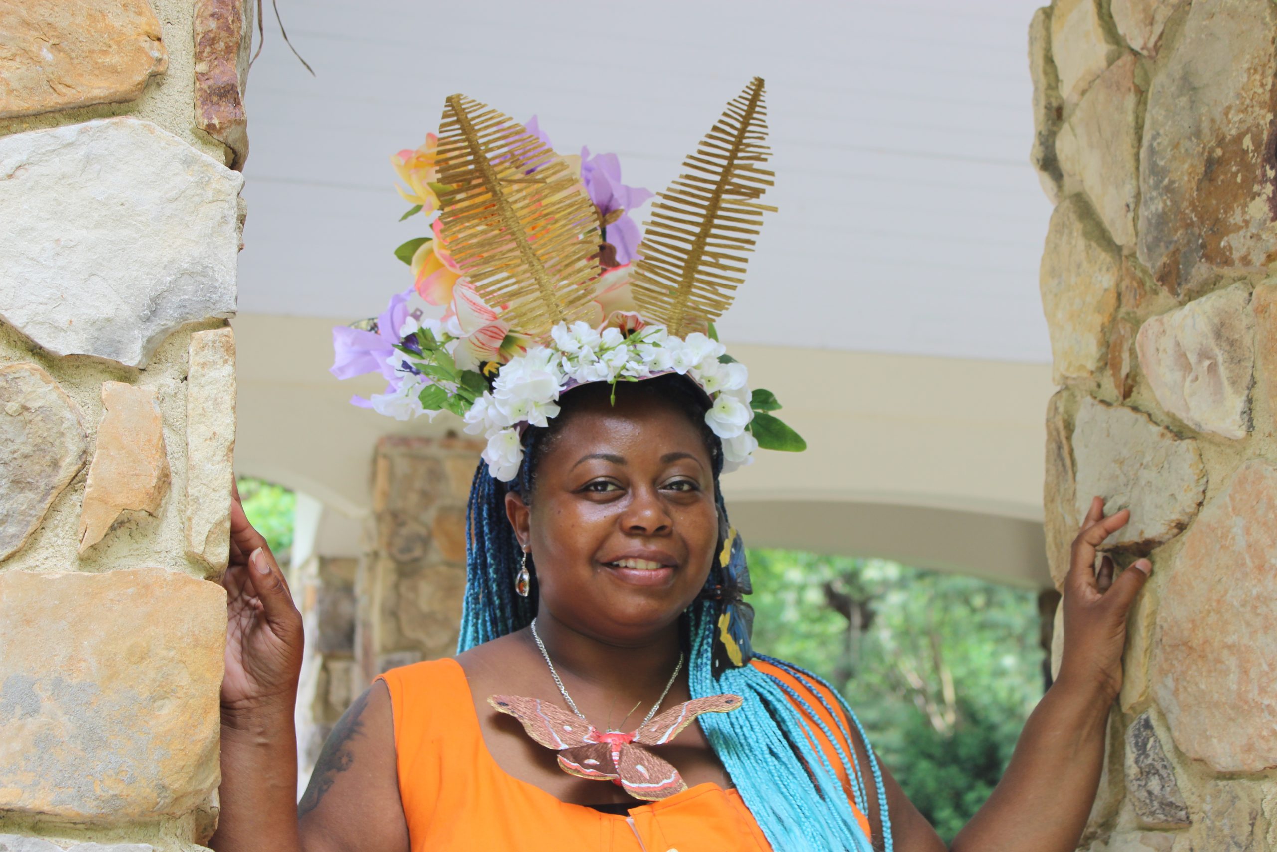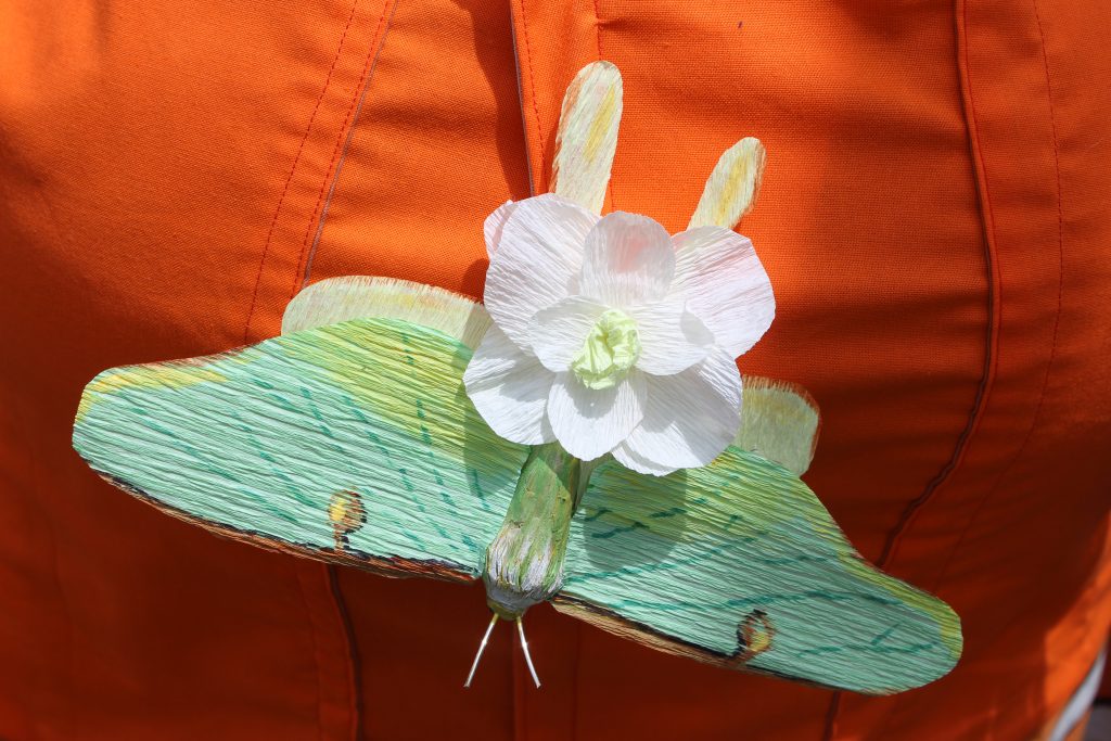 Showcased at Lewis Ginter Botanical Garden in Richmond, Va. (where I am an artist-in-residence), I enjoyed greeting visitors and having them guess my costume. The antennae were a dead give-away to those who know the difference between butterfly and moth antenna. One person knew exactly what I was but, of course, she worked there!
