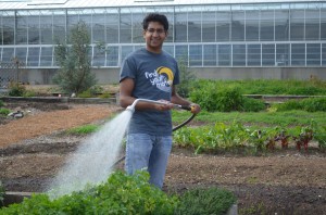Student Sam Salmassi explains how he became interested, “I originally took the class Bio 217 Principles of Nutrition with professor Jill Reid. She was all about organic farming and that’s driven me towards this (service-learning) class working in the Community Kitchen Garden….Everything we’ve done here has been new to me. Originally, I knew nothing about planting or gardening.” But now they know so much.