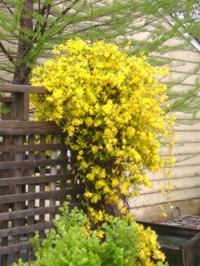 Jessamine vines boast bright yellow flowers that beautifully cascade down fences or trellises.