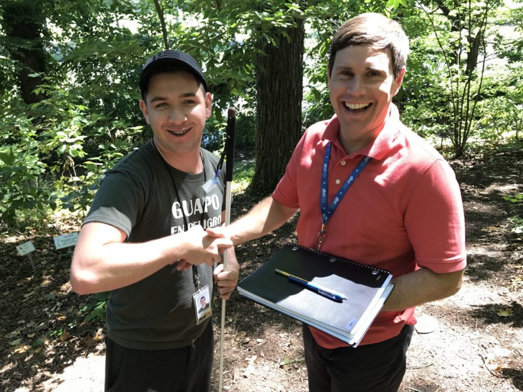 That bright, bright smile! David greeting DVBI’s Greg Chittum, the program coordinator working with youth with vision impairment.