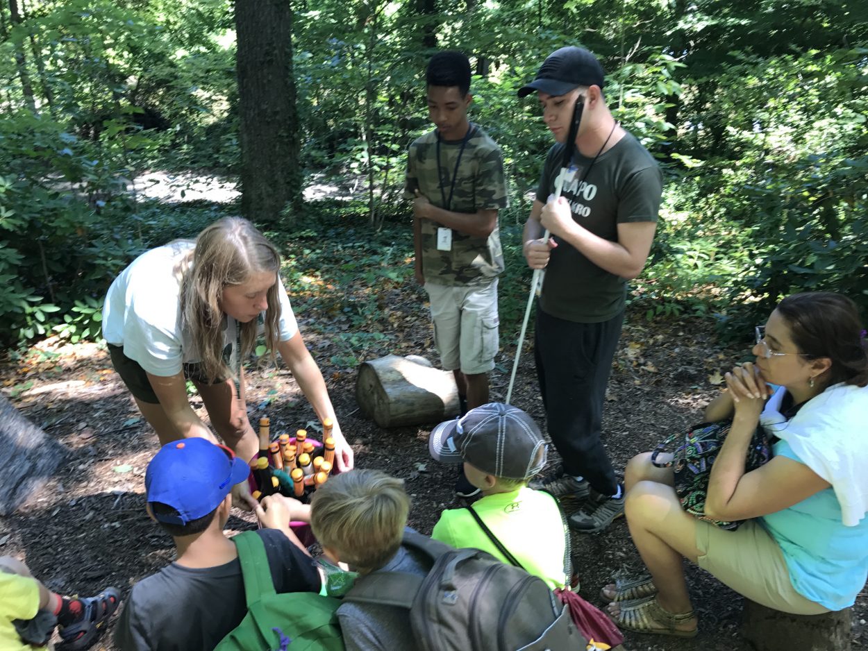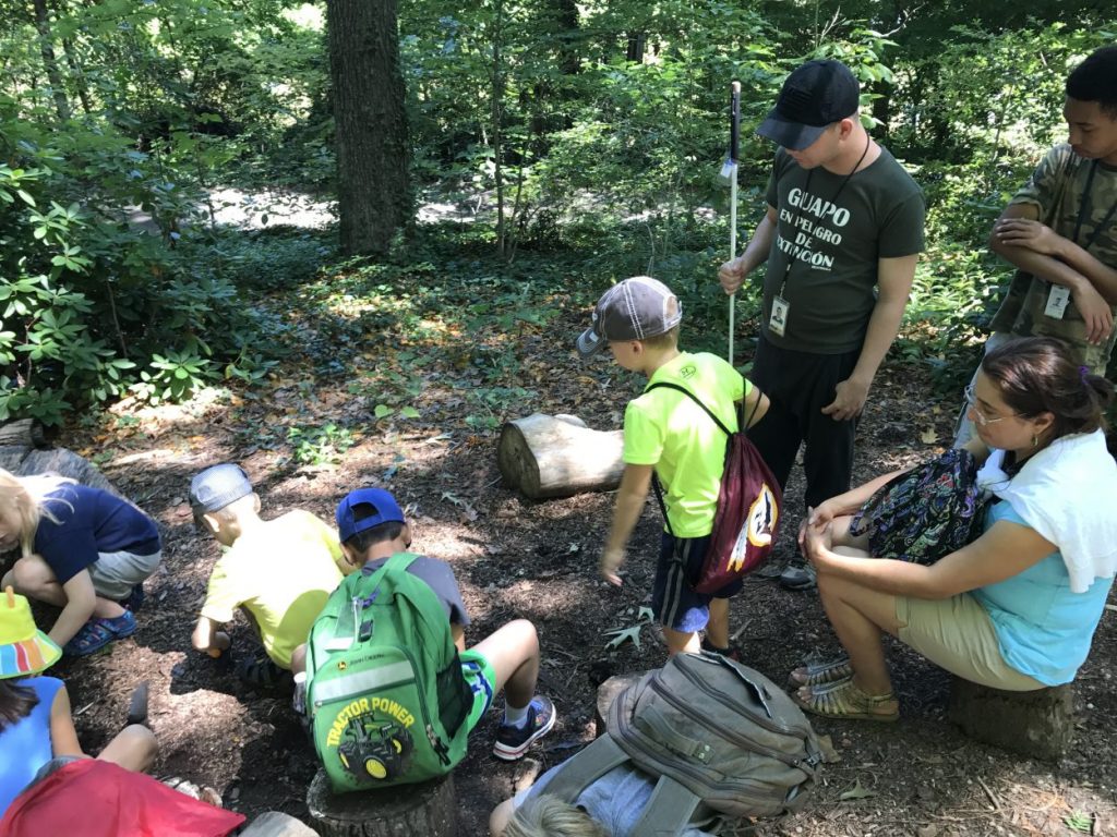 David taking a closer look at how he can help the campers. While Children’s Garden educator Kelsey Deans talks to a camper.
