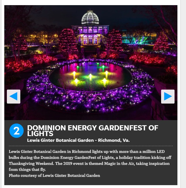 •Voted the fourth “Best Botanical Garden Holiday Lights” by USA Today. (2020)