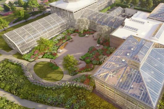 Mary Morton Parson’s Courtyard is located outside the Exhibition Gallery of the Conservatory. Designed by Wambui Ippolito.