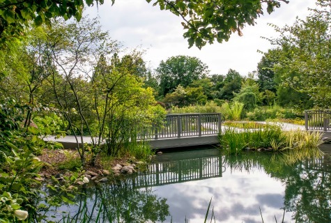The Martha and Reed West Island wetland garden offers stunning views year round. Three small islands in the eastern edge of Sydnor Lake are linked by a series of bridges and boardwalks. The bog-like environment here provides a diverse ecosystem for both plant life and wildlife.