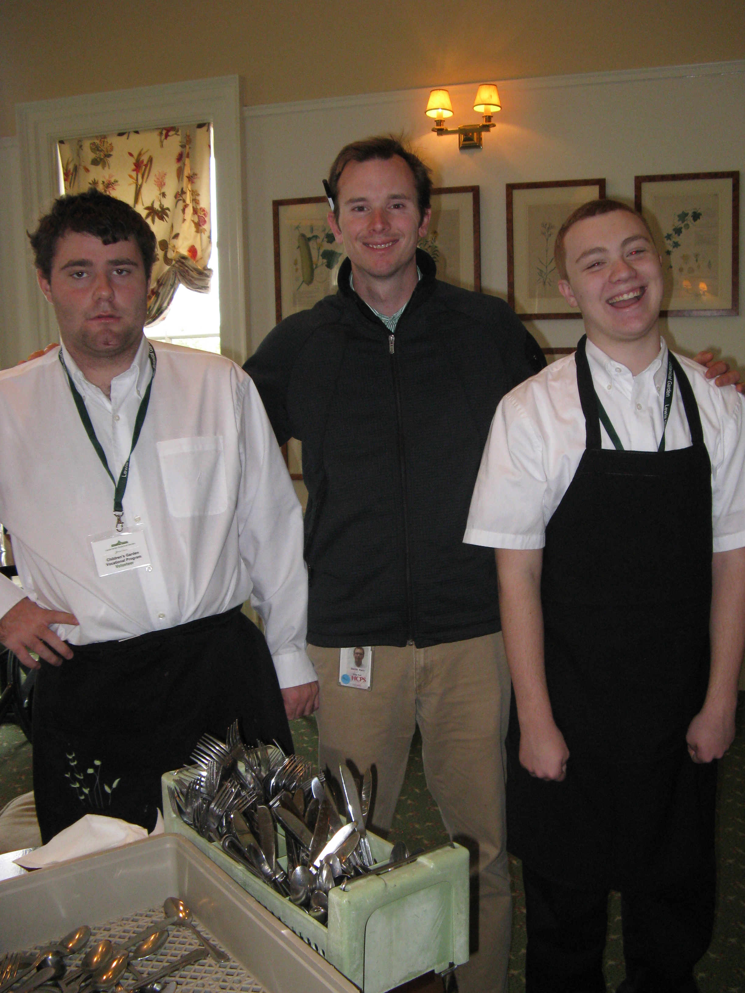 Deep Run’s CoWEP students have helped us expand of our Vocational Program from gardening-related programs into the field of food service. Participants go through the process of filling out a job application through the Garden’s in-house catering partner, Meriwether Godsey and work in the Garden Café. They also attend employee orientation, which includes a safety in the workplace training. After going through the employment process, the students began reporting for work each Tuesday morning. The group clocks in, washes their hands, reports to their supervisor, Michelle, and then begins their routine of tasks — work that is typical in a commercial kitchen or restaurant. At the end of the day, they clock out again. After months of participating in the program, the students know the routine well. The group runs like a well-oiled machine.