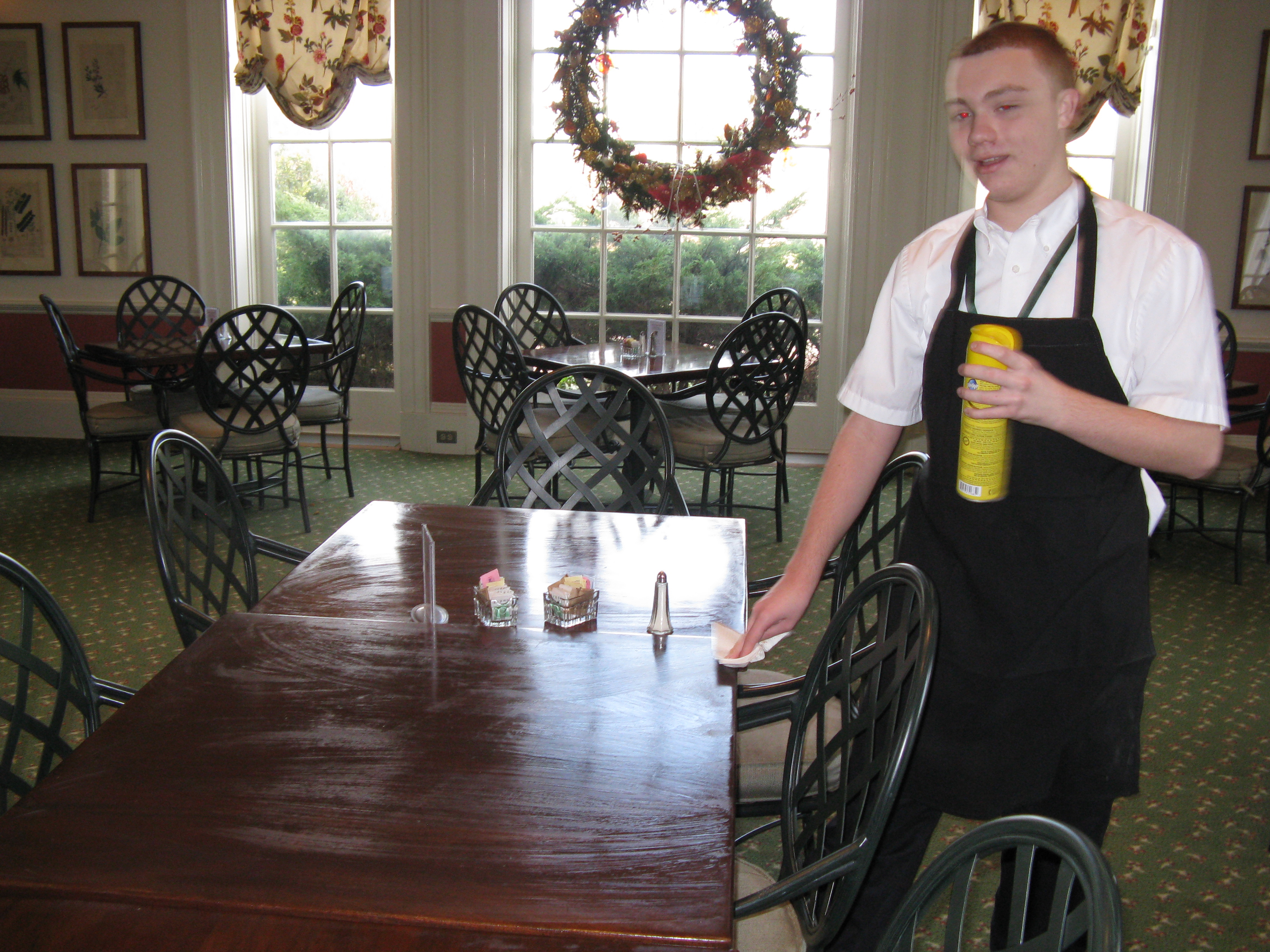 First, I talked to Kyle. After his routine of filling salt and pepper shakers and disinfecting tables, he took a break to talk to me. “CoWEP is all about jobs — jobs that anyone can get.” It’s a simple concept, but a complicated situation for persons with disabilities in the workforce. CoWEP and other job training programs are constantly in need of work sites like this who can partner for teaching programs. Kyle is a great conversationalist and makes any topic colorful, even when talking about work tasks. Kyle confesses to me that food service is not his preferred career path — his passion is inventions. He has a refreshing interest in life and a drive that not everyone in the working world possesses. He lets me know that he “would like to be the manager” one day. This sort of intrinsic desire to thrive in the work force is what the Vocational Program is all about.